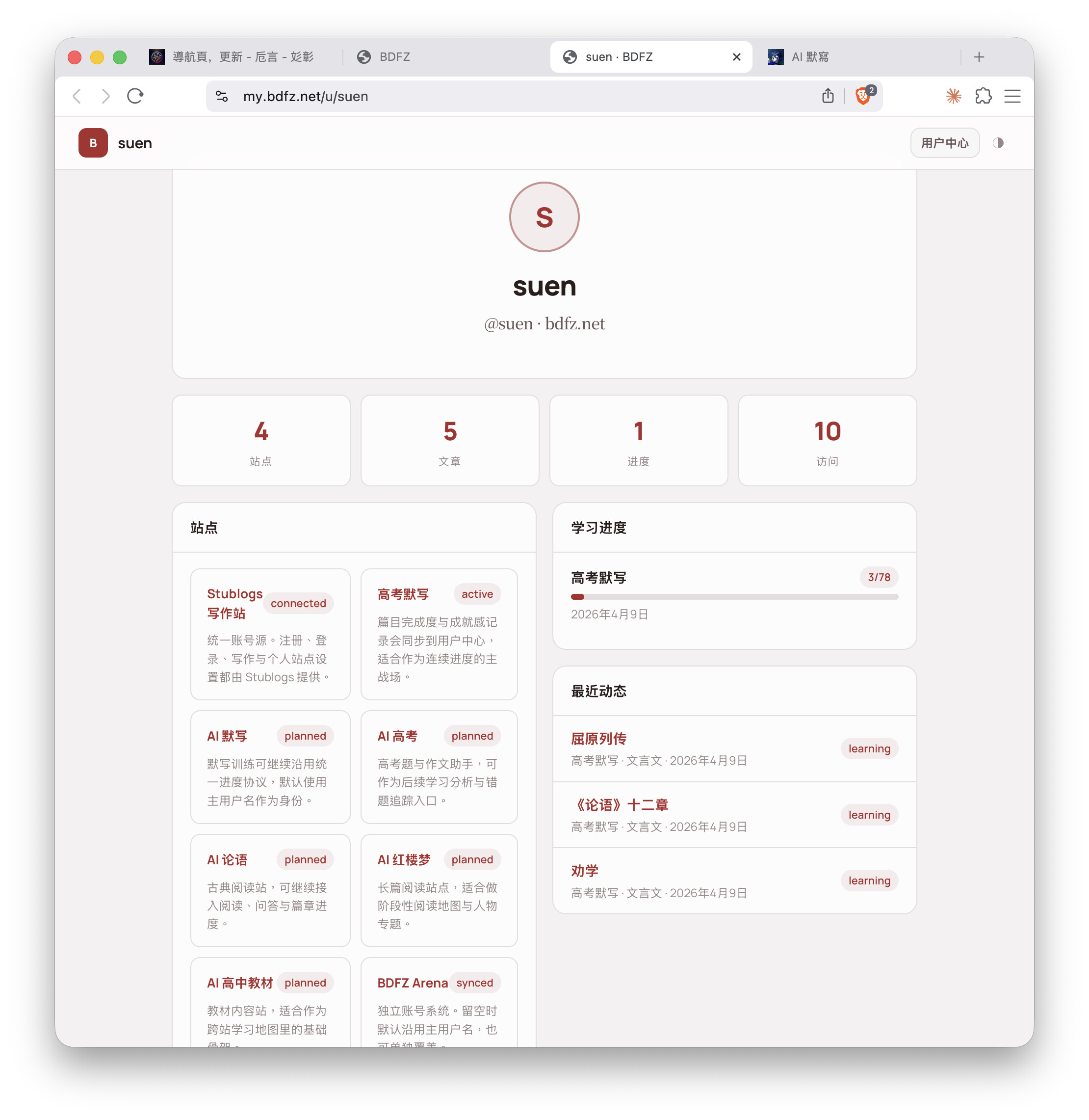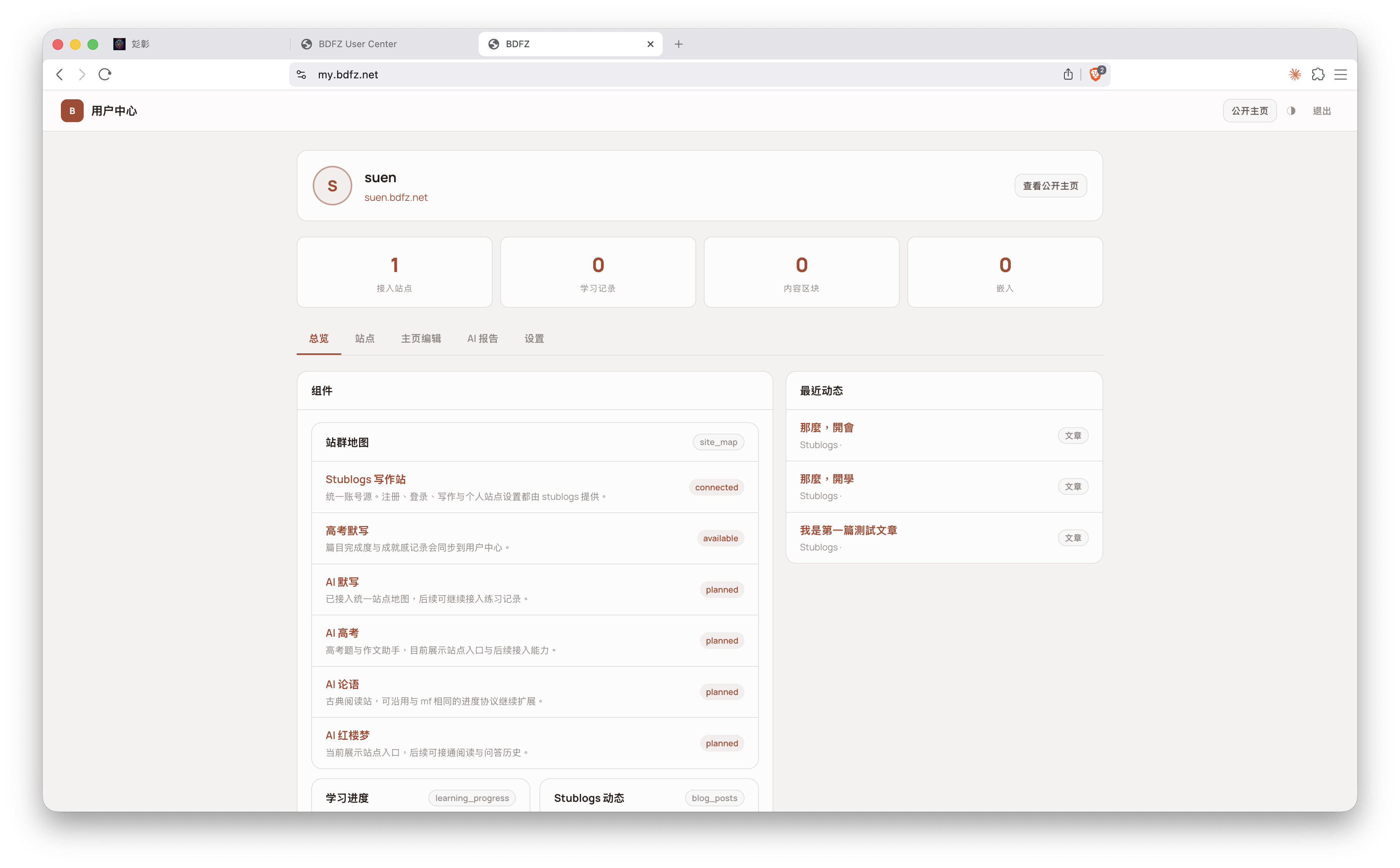 用户中心!终于要把这些站点串起来了吗?期待一下(搓手)