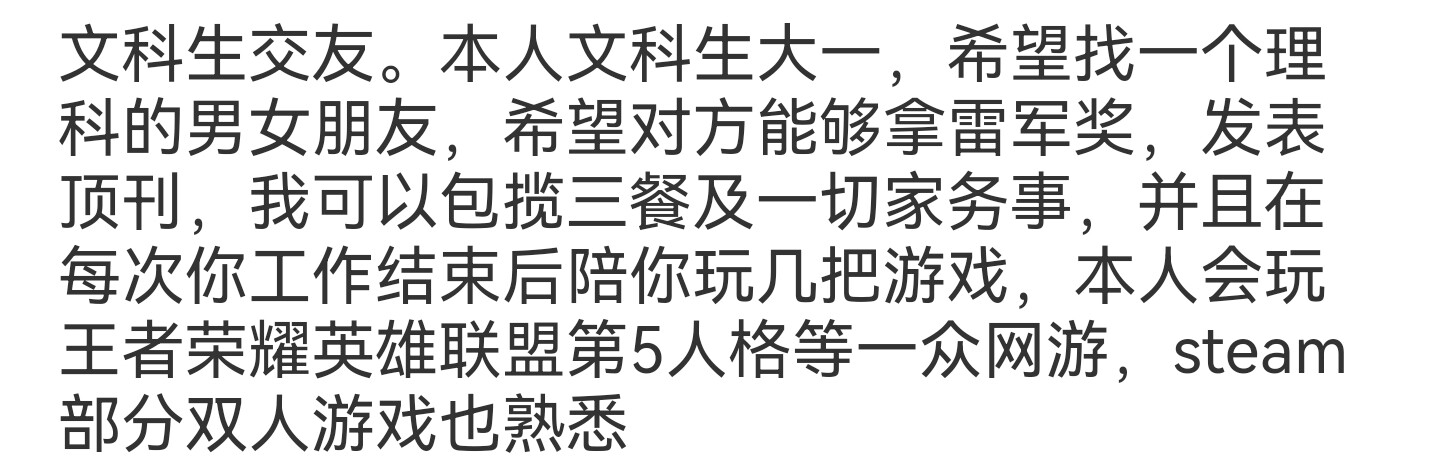 绷,合着女友做的都是实事,包揽家务什么的,这哥们对女友只有“鼓励多学科交叉探索”(?