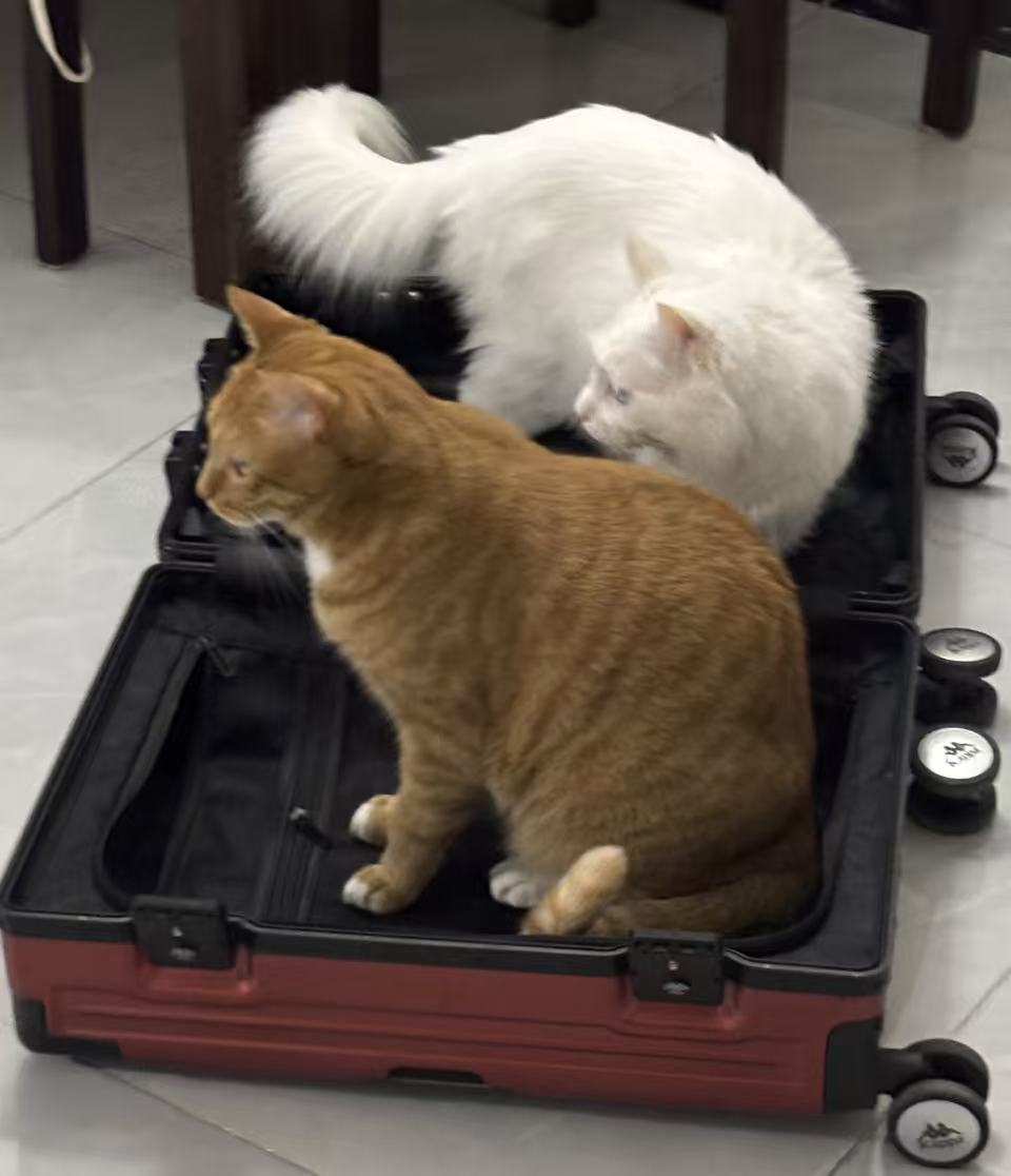 把猫拿出来,然后发现行李里全是猫毛