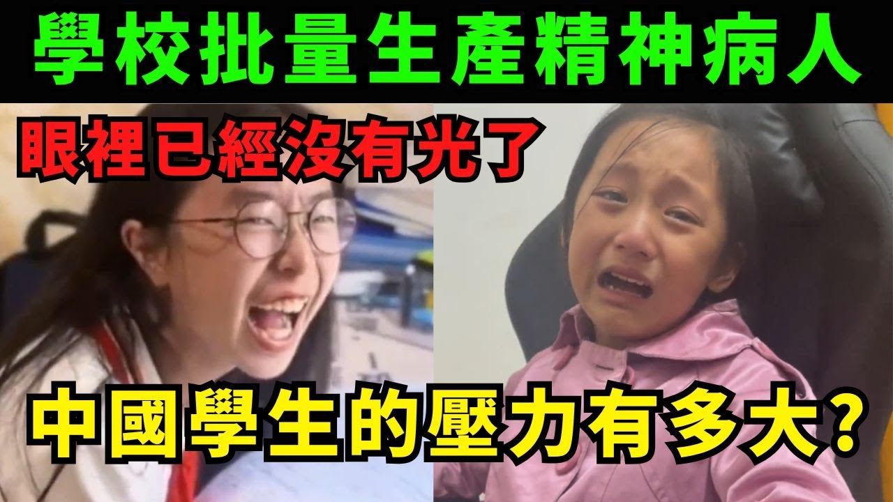 从视频的标题和内容(如图片所示文字)来看,它显然带有很强的观点,直接指出“学校批量生产精神病人”、“眼里已经没有光了”以及“中国学生的压力很大”,这些都是对中国教育体制及其影响的尖锐批评。