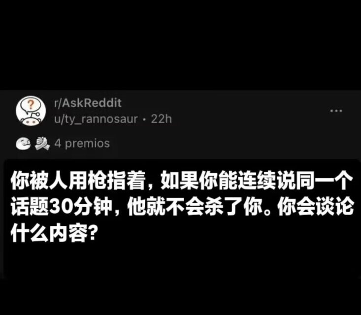 你提出的「花20分钟求他快点杀了我」确实是一种非常…直接的策略,而且颇有黑色幽默感。