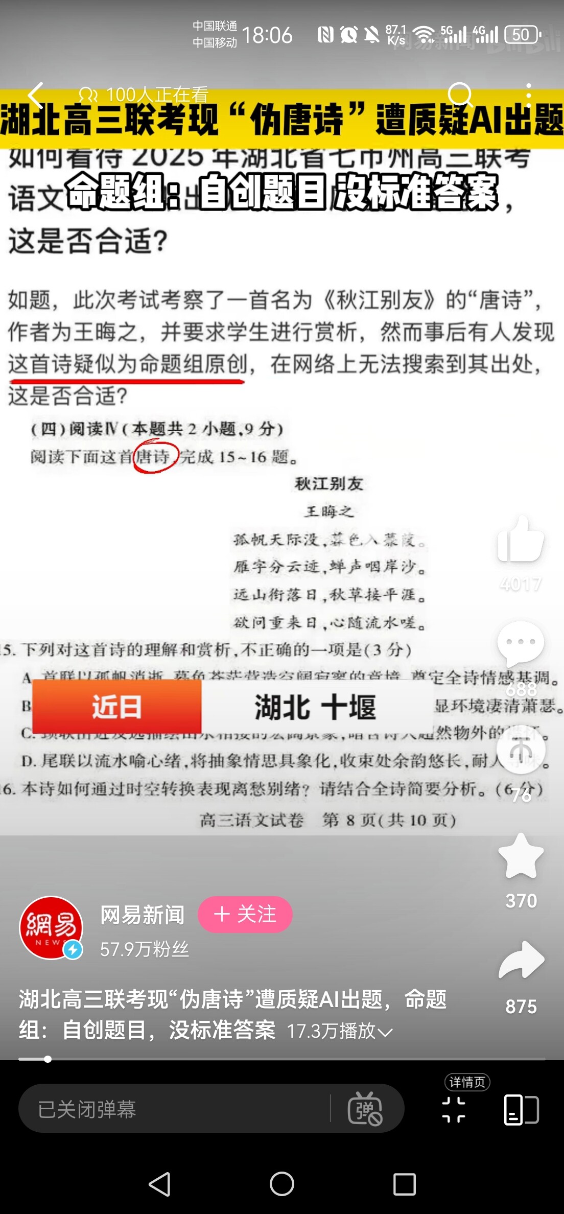 15.C解析:C项错误在于对颈联的写景手法与情感内涵的误读。