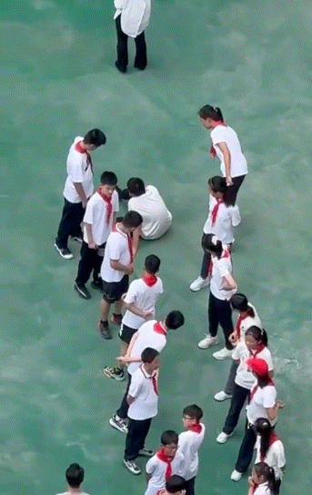 所以面对突发状况,孩子们无法做出最基本的“人性化反应”。相信这些孩子,一定有很多人的第一反应是冲过去查看帮助。但“纪律”让他们犹豫了。孩子们被“规训”得非常好,居然能够克制住人性本能,在善良和冲动之间,选择了遵守纪律。