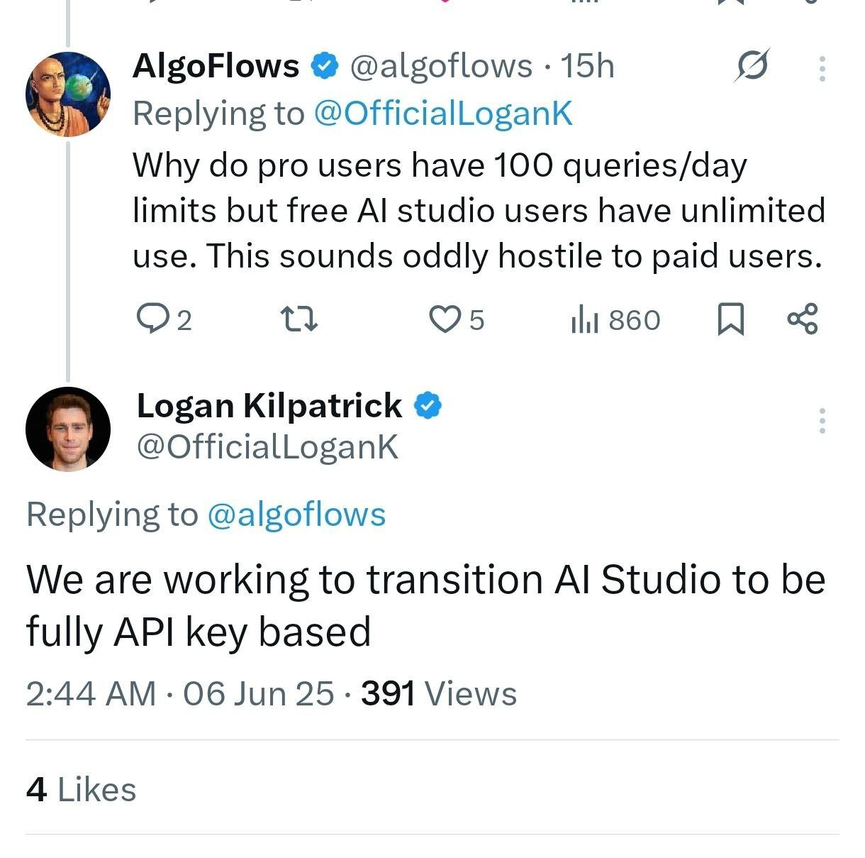 論壇 API 調用一直是基於aistudio,不會受影響;但你自己如果一直在用後面這個開發者鏈接使用 Gemini 的話,可能要少一個平台了。