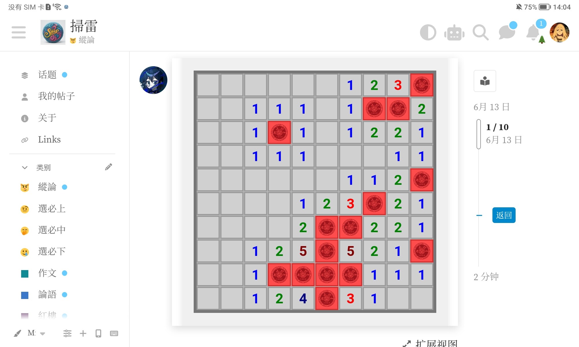 另外这个没有显示剩余雷数,大小也不规范(9x9 10雷/16x16 40雷/我也不记得多大但是99雷)