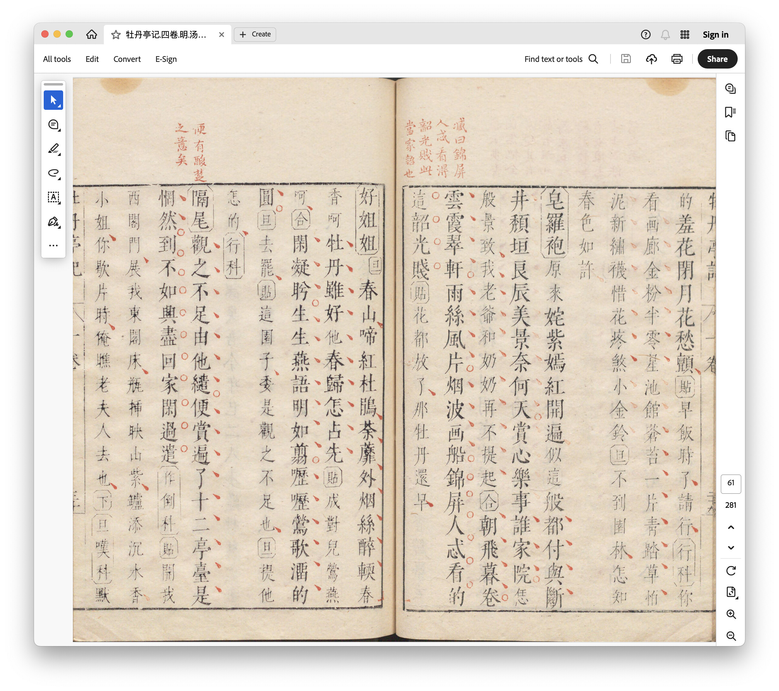 天下女子有情,甯有如杜麗娘者乎!夢其人即病,病即彌連,至手畫形容,傳於世而後死。死三年矣,復能溟莫中求得其所夢者而生。如麗娘者,乃可謂之有情人耳。**情不知所起,一往而深。**生者可以死,死可以生。生而不可與死,死而不可復生者,皆非情之至也。夢中之情,何必非真?**天下豈少夢中之人邪?**必因薦枕而成親,待掛冠而為密者,皆形骸之論也。傳杜太守事者,彷彿晉武都守李仲文、廣州守馮孝將兒女事。予稍為更而演之。至於杜守收拷柳生,亦如漢睢陽王收考談生也。嗟夫!人世之事,非人世所可盡。自非通人,恆以理相格耳!第云理之所必無,安知情之所必有邪!