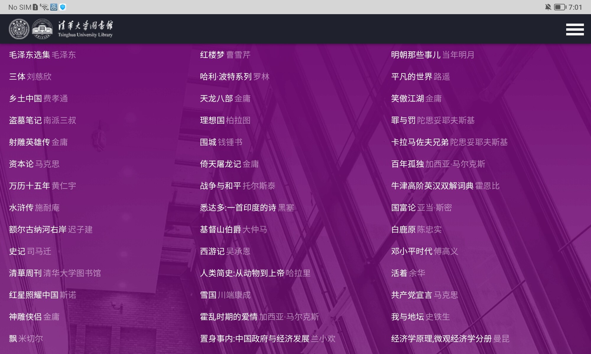 - 豐富的中國經典與現當代作品: 大量中國古典文學(如《紅樓夢》、《西遊記》、《水滸傳》、《史記》)、現當代文學(如《三體》、《盜墓筆記》、《白鹿原》、《活著》、《平凡的世界》)以及重要的歷史社會學著作(《鄉土中國》、《萬曆十五年》)。