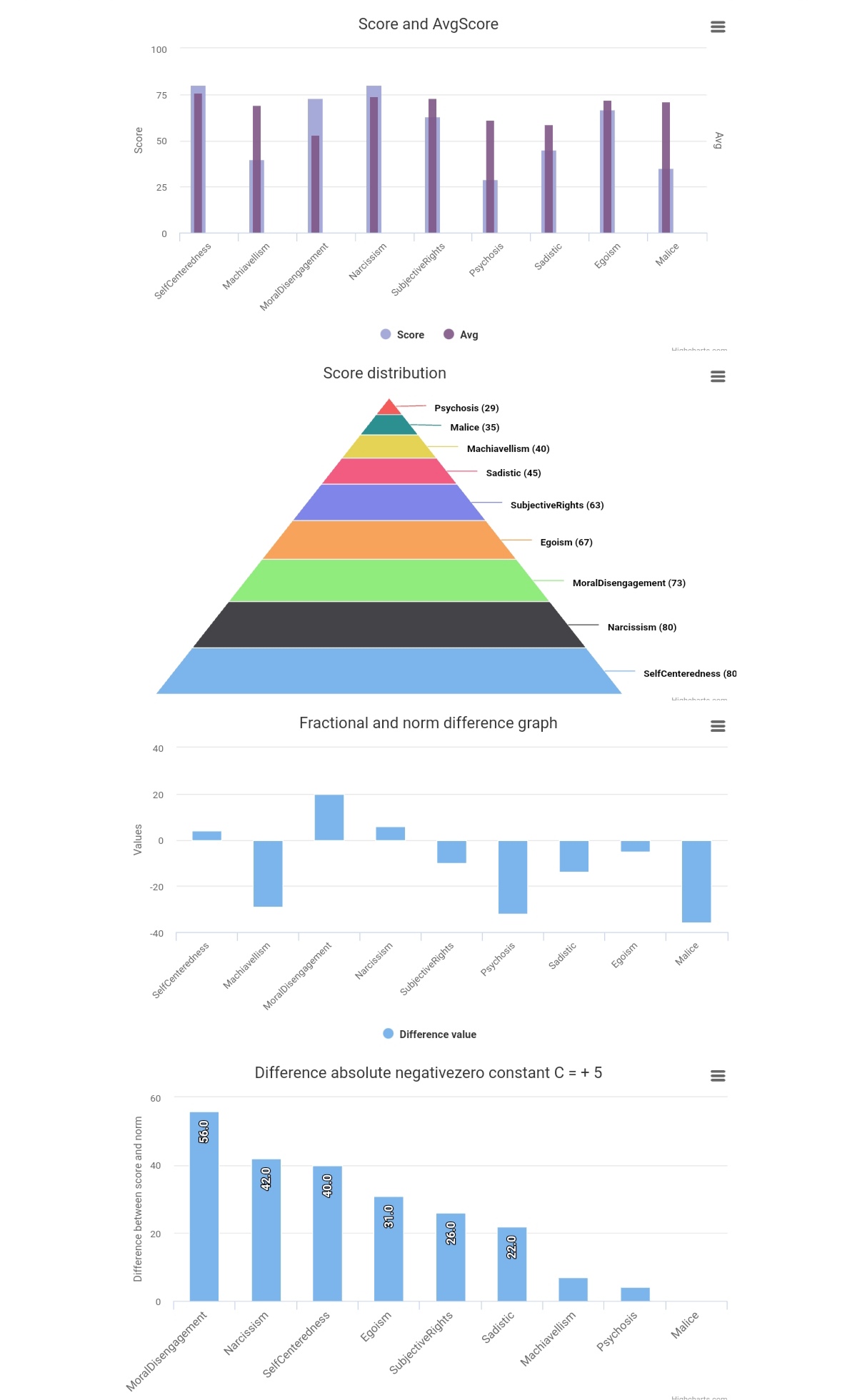 - 最低:Sadistic (40), MoralDisengagement (40)