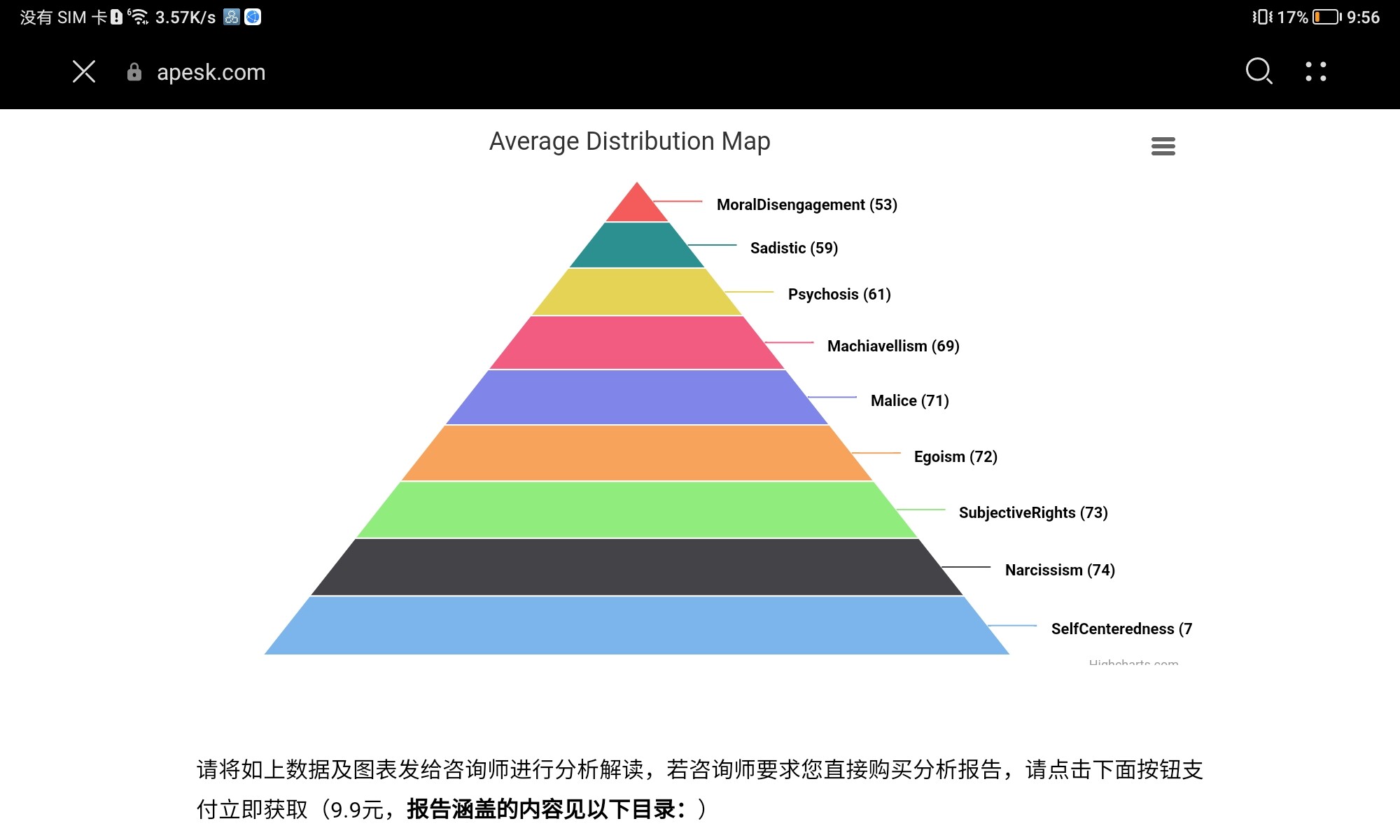 | 施虐倾向 | 55 | 59 | 低了4分(你不太会从别人痛苦中找乐子) |