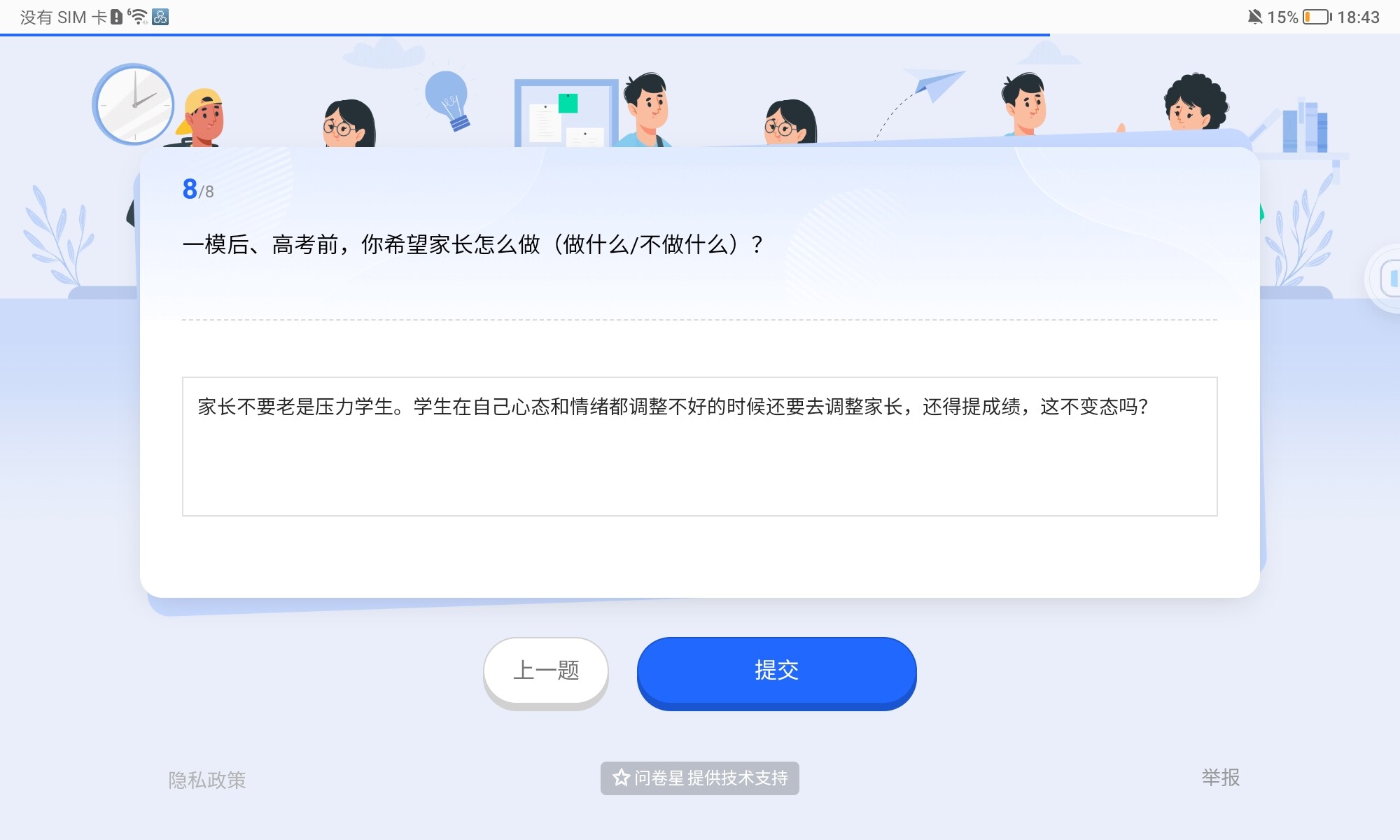 之前磊跟我爸妈说了一句不要给我提供情绪价值,也不要跟我谈感情,说我就像是不想学,推一推才动一下。然后我爸妈每次都拿这句话压我,说我不努力。