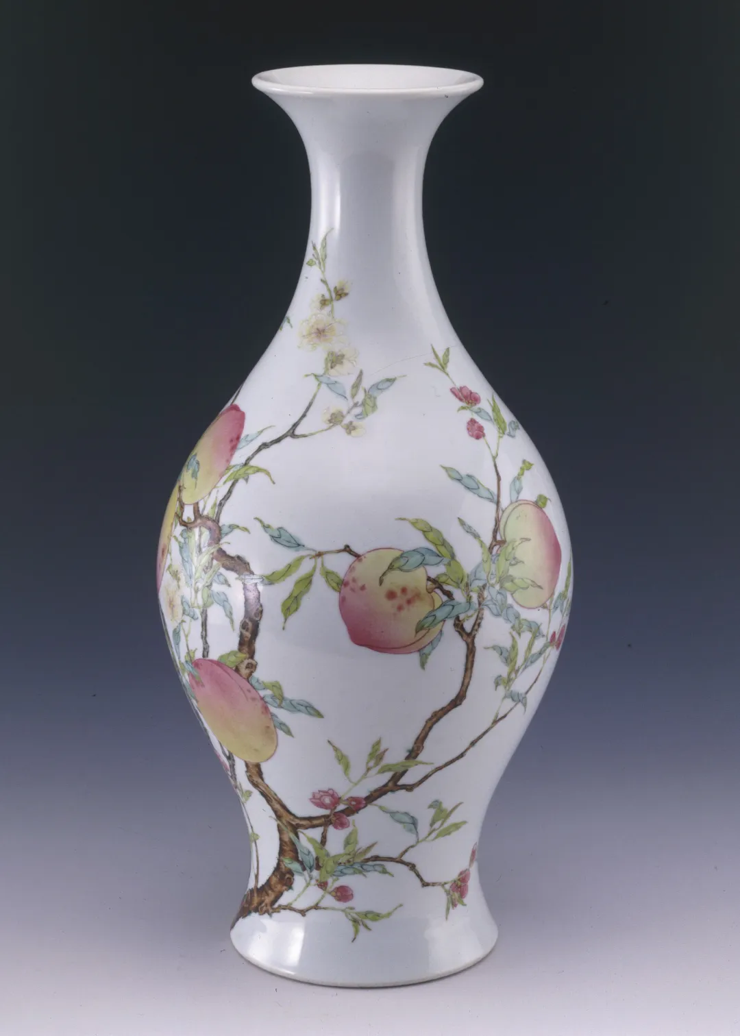 清雍正粉彩蝠桃纹橄榄瓶。图源上海博物馆官网