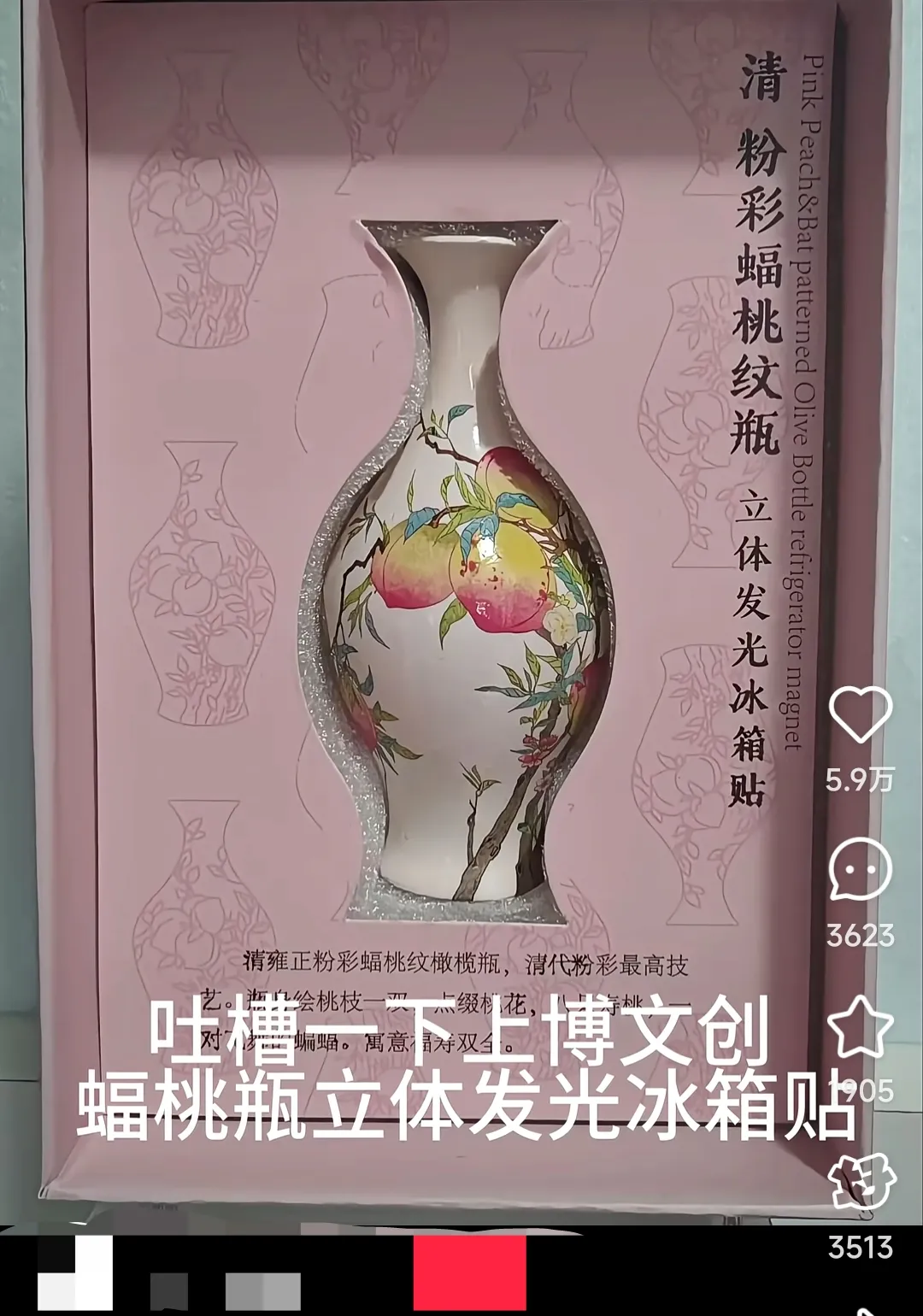 网友质疑上博文创蝠桃瓶立体发光冰箱贴“不尊重历史”。图源。社交媒体