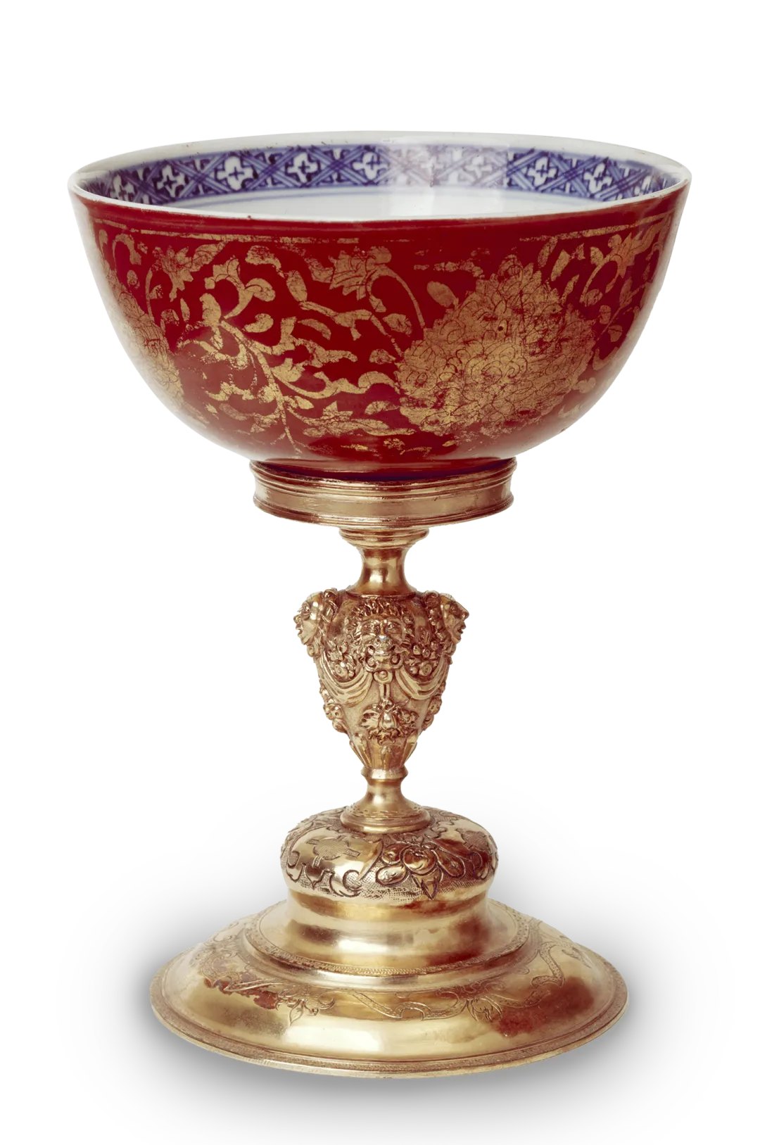 青花矾红描金缠枝莲纹碗镶嵌鎏金银座 约1583年中国景德镇窑瓷器,德国镶嵌 英国国立维多利亚与艾尔伯特博物馆藏
