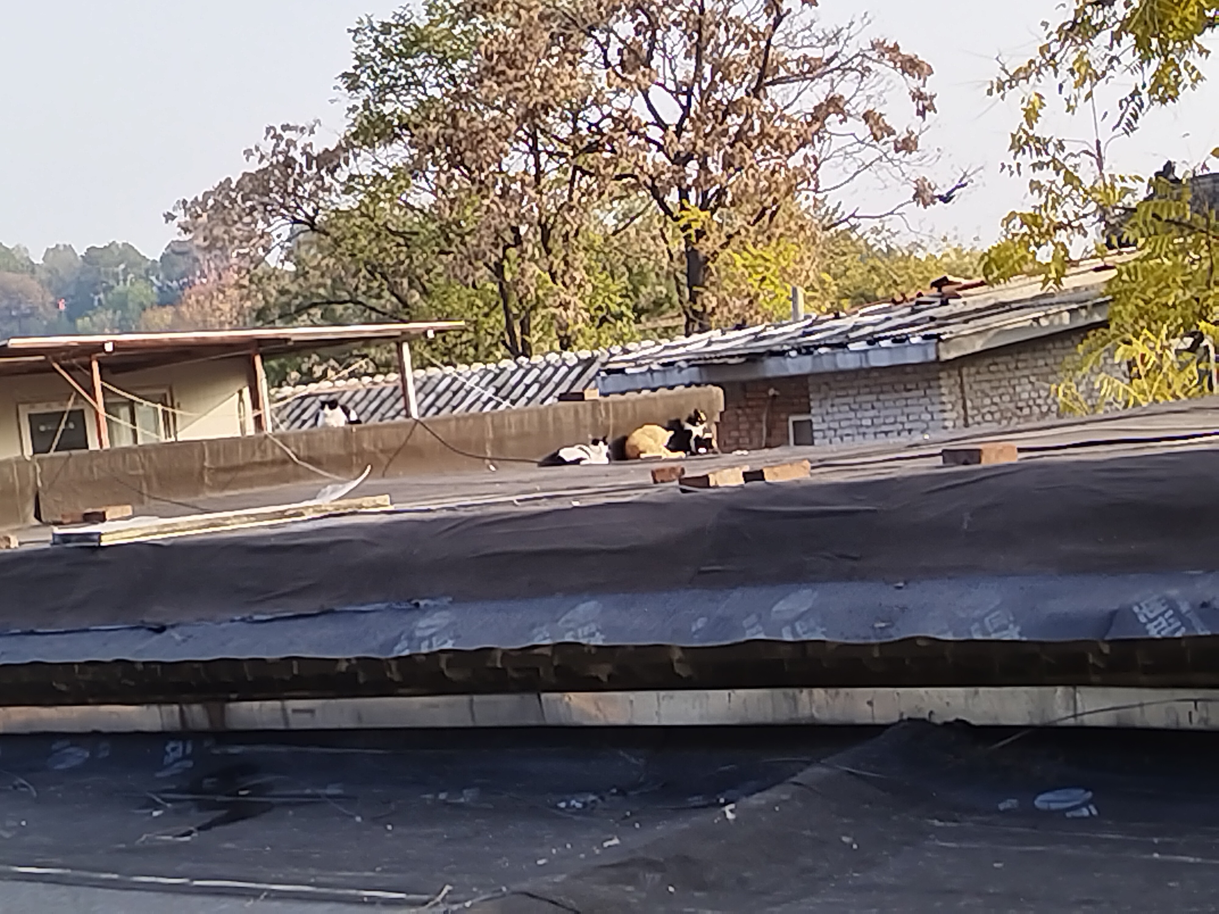 四只猫,靠右侧的两只在打情骂俏,与我无关