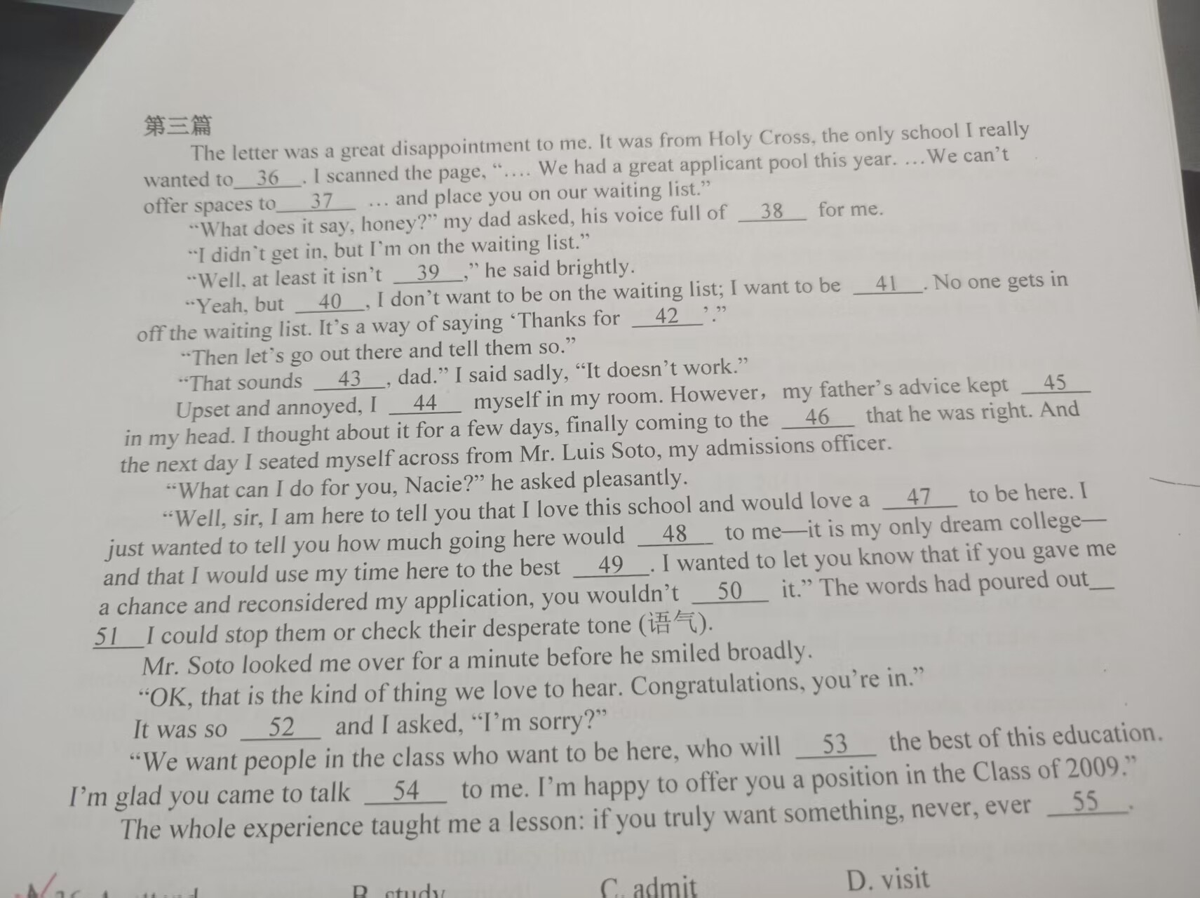 文章里是充满理想主义的、平等的对话:学生Nacie用热情和真诚打动了招生官。这是一种人格上的相互尊重,一个理想化的“程序正义”的体现。