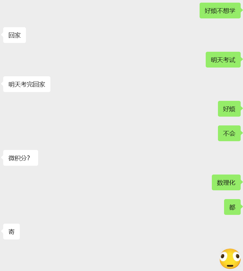 明天下午考完就回家,然后周一周二来考普物和无机,然后放假