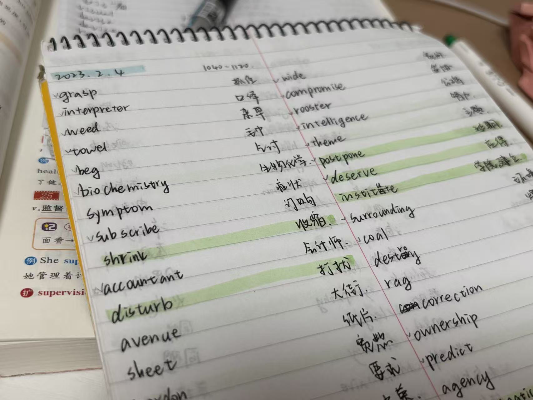 高一英语差得没边,下定决心开始背单词,从淘宝三块钱买了个三千五百词的乱序,用记事本的后半部分一点一点捋着。词表盖着中文,然后对着单词,想中文意思,然后看对应的中文,遇到不认识的或者不熟的,就在本上写下来。之后对着本上的单词背,再把本上的中文盖住,从上到下过意思,能把当天的单词全部完整过下来就放过自己。虽然会因为词的顺序记住,但我觉得我过两天会再看看,反正有印象总是好的,说不定就背下来了。后来在kkv看到了这个本,太令人心动,以那个本太大了为由,用这个本开始背,正着是单词,反着是作文积累。一点一点不知道进没进脑子,反正差几页快写完了