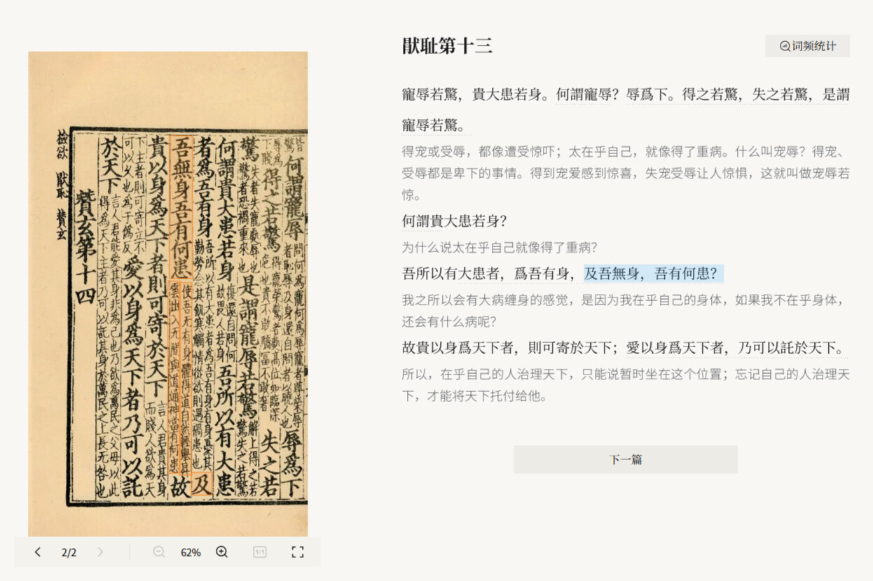 昔者彌子瑕有寵於衛君。衛國之法,竊駕君車者罪刖。彌子瑕母病,人閒往夜告彌子,彌子矯駕君車以出,君聞而賢之曰:「孝哉,為母之故,忘其刖罪。」異日,與君遊於果園,食桃而甘,不盡,以其半啗君,君曰:「愛我哉,忘其口味,以啗寡人。」及彌子色衰愛弛,得罪於君,君曰:「是固嘗矯駕吾車,又嘗啗我以餘桃。」故彌子之行未變於初也,而以前之所以見賢,而後獲罪者,愛憎之變也。故有愛於主則智當而加親,有憎於主則智不當見罪而加疏。故諫說談論之士,不可不察愛憎之主而後說焉。夫龍之為蟲也,柔可狎而騎也,然其喉下有逆鱗徑尺,若人有嬰之者則必殺人。人主亦有逆鱗,說者能無嬰人主之逆鱗,則幾矣。