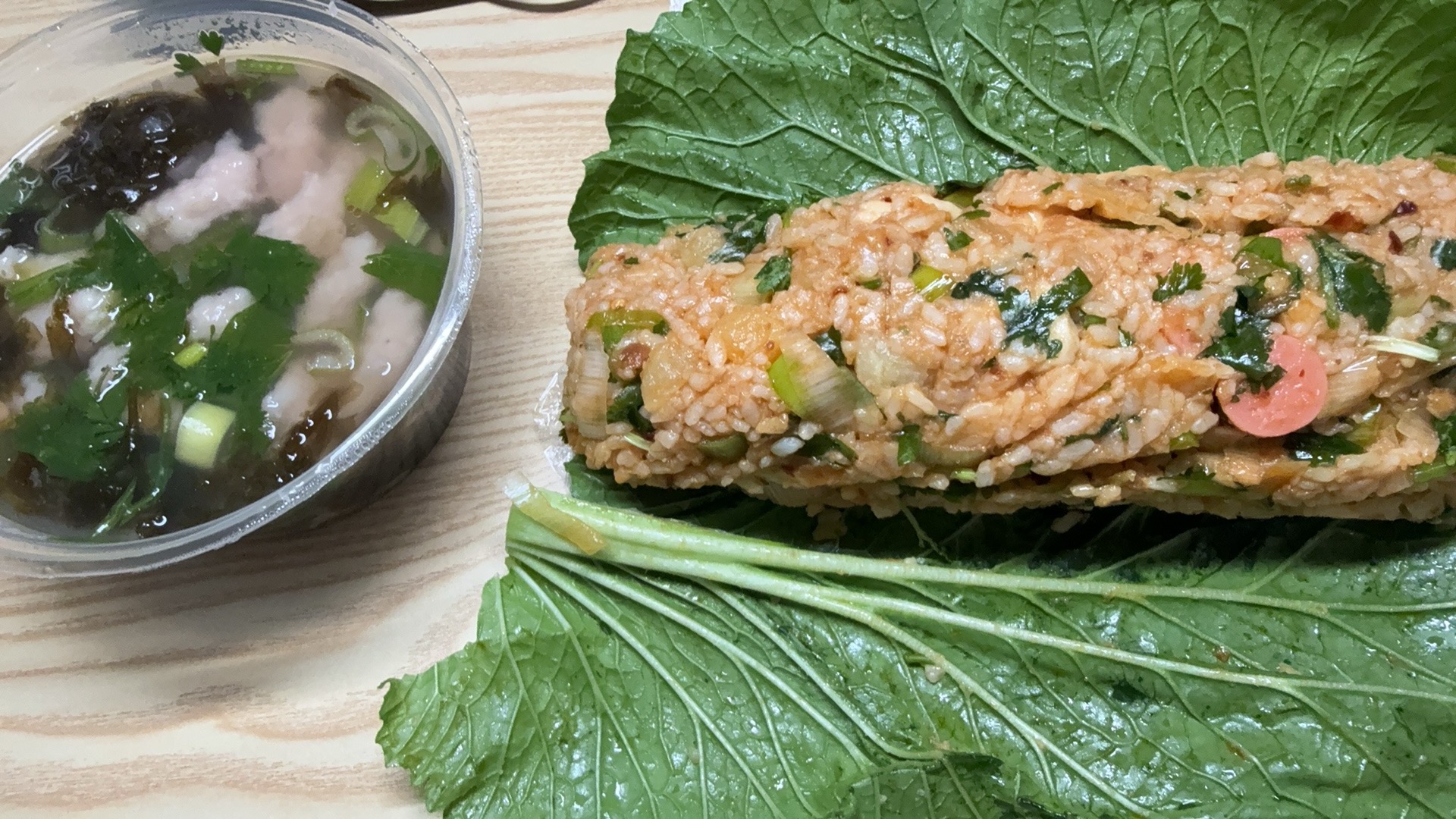 原来外卖的菜叶包饭真是用菜叶包的