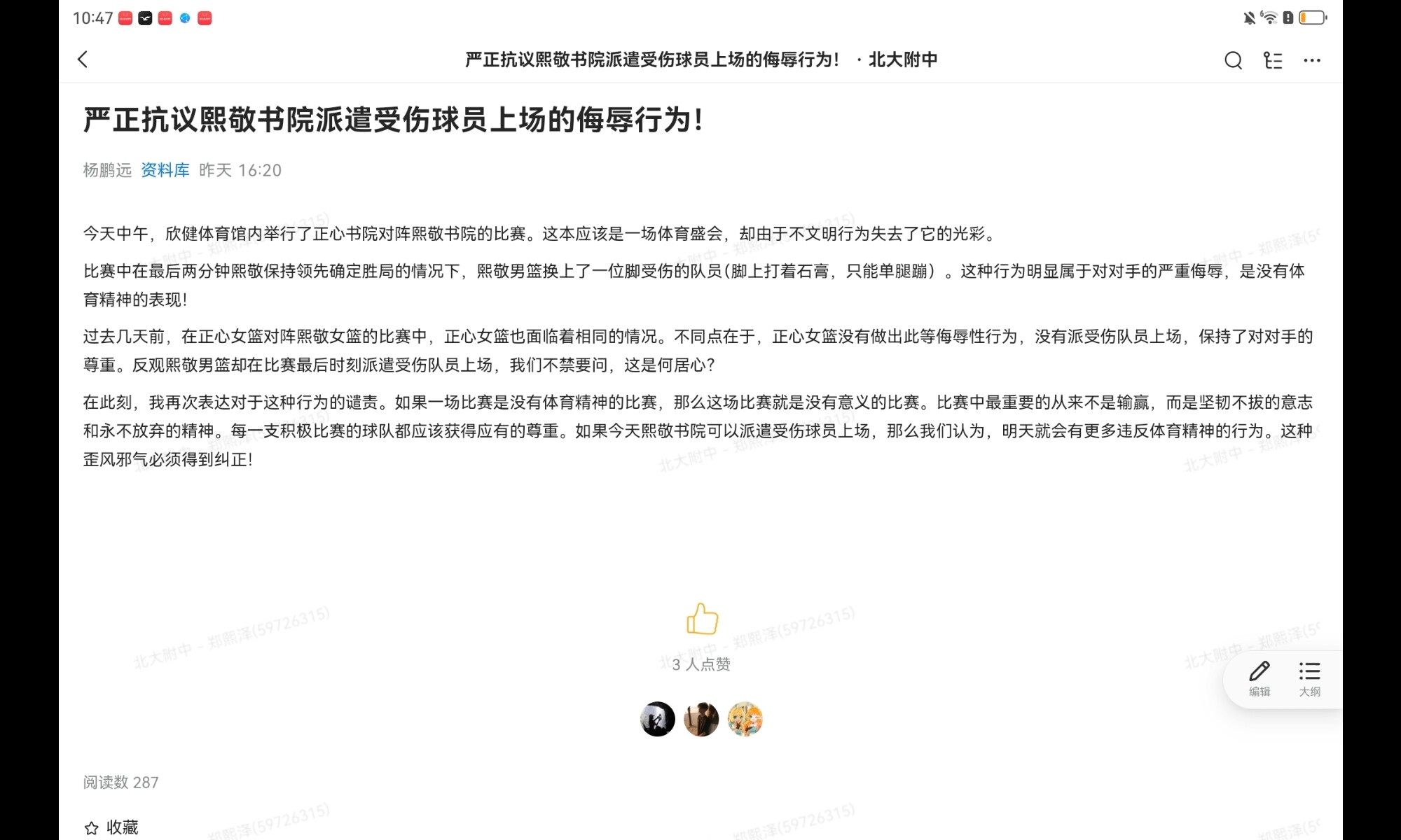 希望熙敬在以后可以对其他书院应有的尊重,而这次事件也应该向对方道歉