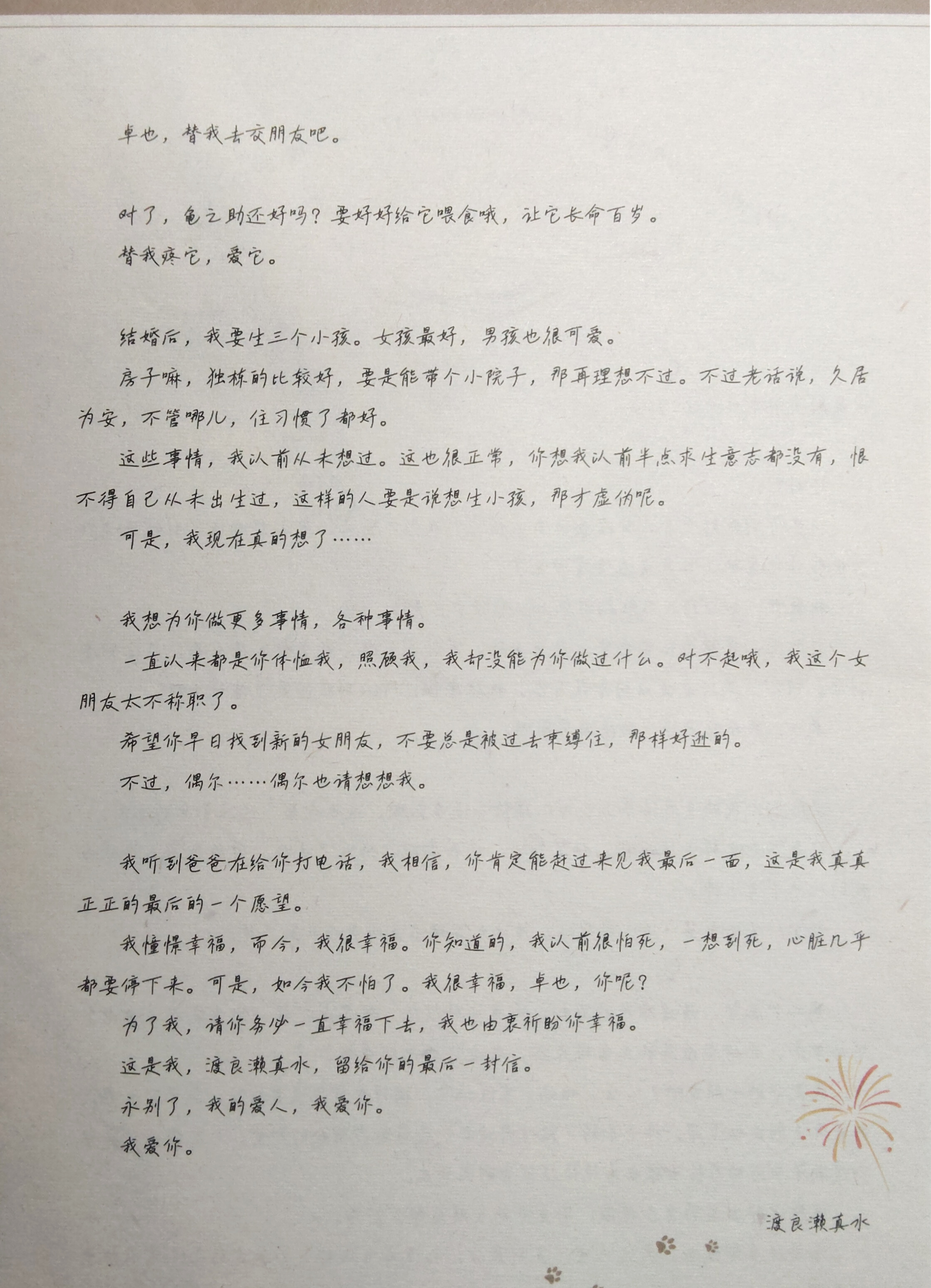 可谁叫我偏偏又爱看这种,我渴望书中的男女主可以相伴一生平平安安,但扫一眼简介,也猜出来了奇迹大概是没有的。短篇的轻小说大多都不爱包饺子,那就死吧,你死他死我死,翻一页,给主角的生命倒数一次。最后看活着的人哭的死去活来,我像m一样喜欢看这些