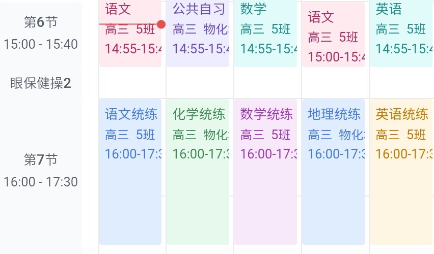 所有班级的主课统练前的单节课被调换成统练科目
