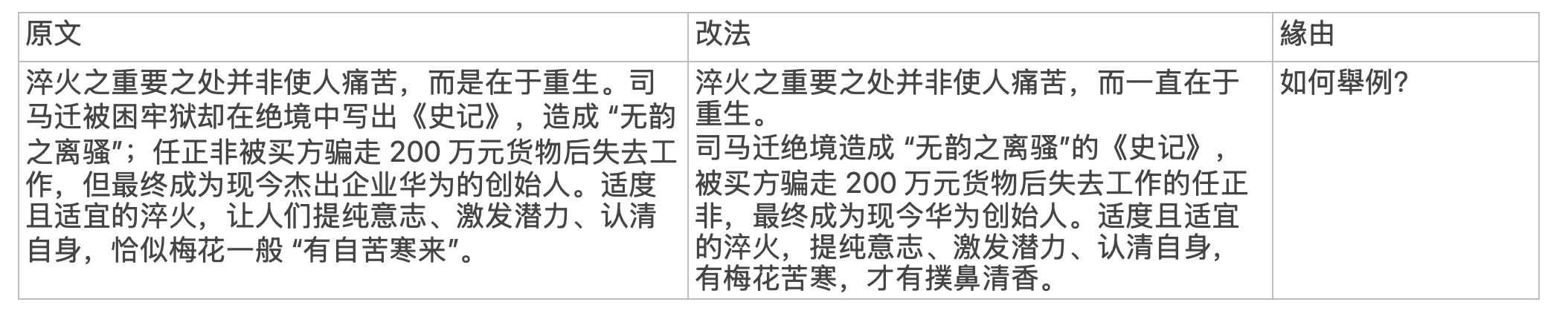- 語言表達(7/10):用詞準確,但句式平鋪直敘,少文采點綴。譬如「爆發出更亮眼的光芒」略顯俗套,不如化用《荀子》「青出於藍」的意象,增添凝練之美。