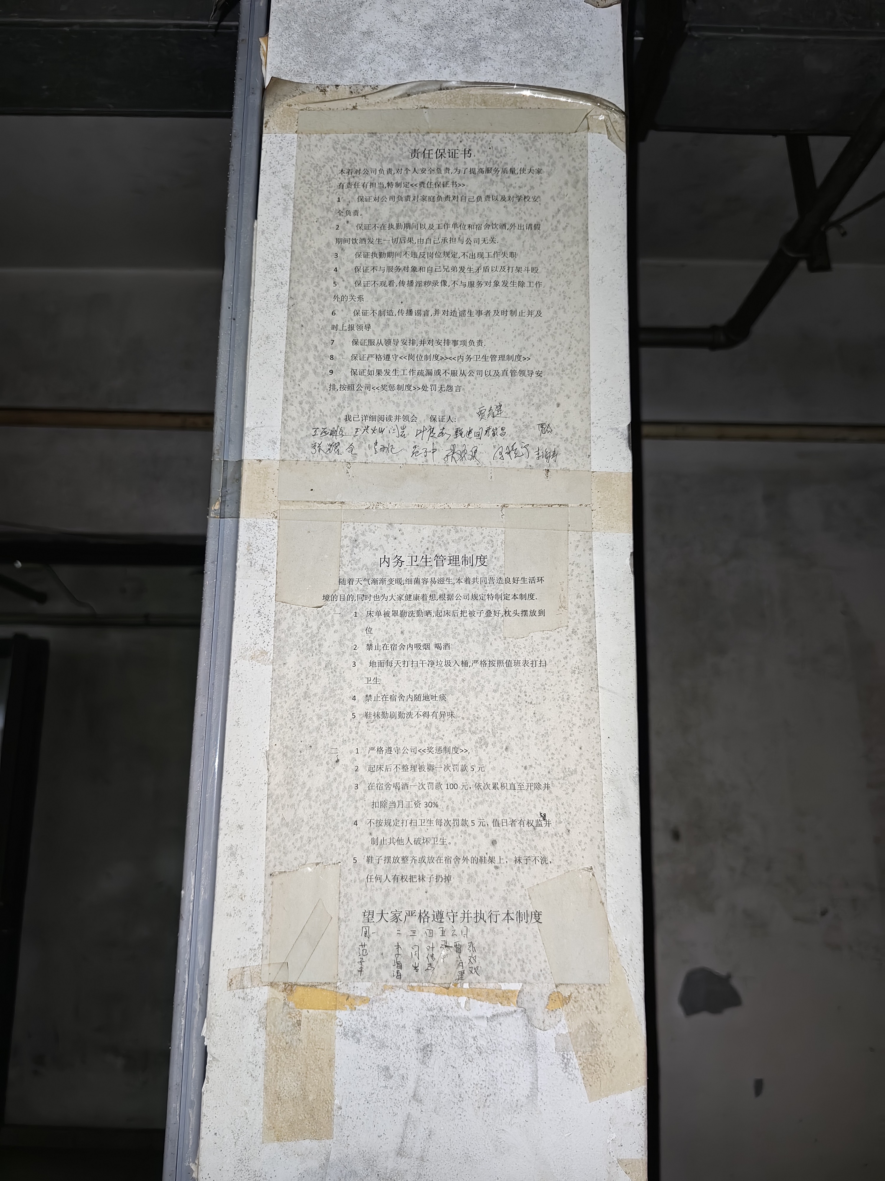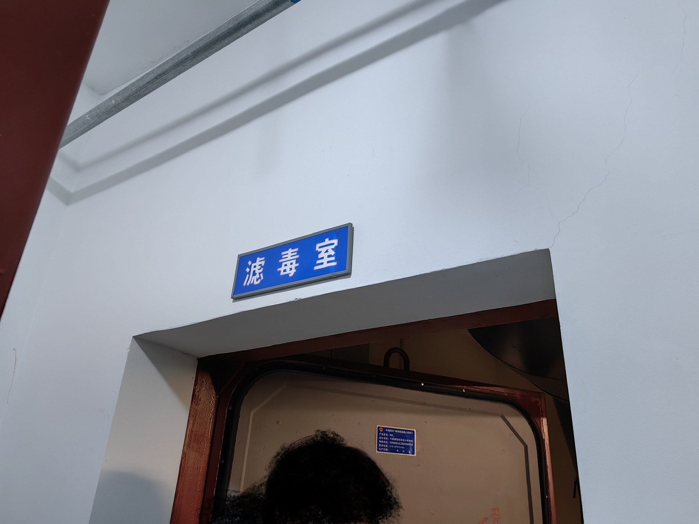 南楼对面停车场入口进去下b2,拐几个弯有个地方放了一堆桌椅,桌椅边上有个防火门,进去就是滤毒室,门口贴了个“滤毒室”的牌子,牌子有点世纪初的风格。我上次去滤毒室的时候房间里还有一套桌椅