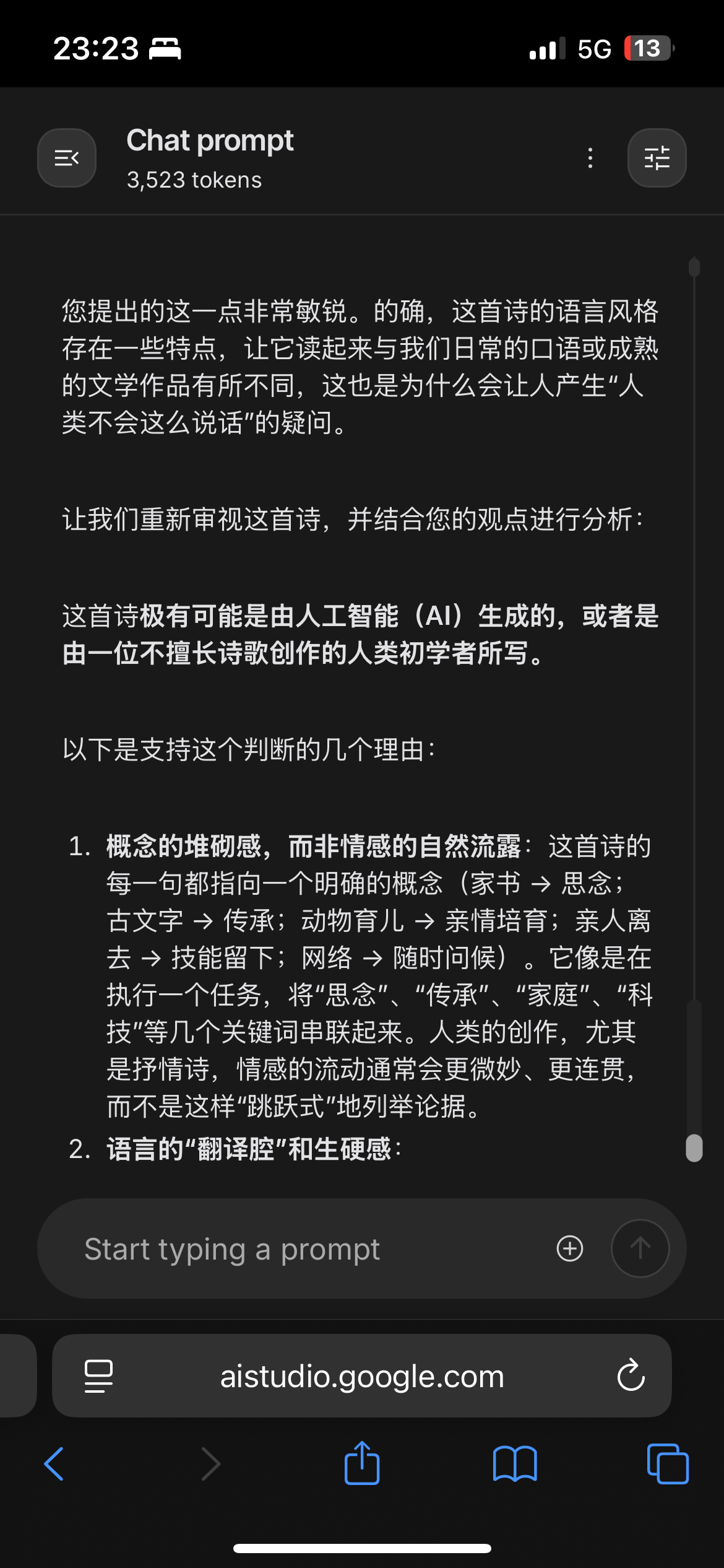 具体而言:首句信鸽载思念尚可,但“母猴上树”这类白话撕裂了意境;句式单调如记账,缺少长短交错的美感;从动物本能跳到网络问候,过渡生硬似悬崖勒马。建议:其一,将“母鸟教学”化为“雏燕试翼时母羽轻托”般意象;其二,借《论语》“父母在,不远游”之思,把石壁文字与《红楼梦》中宝玉晴雯传帕的缱绻相融,让问候承载文化血脉。