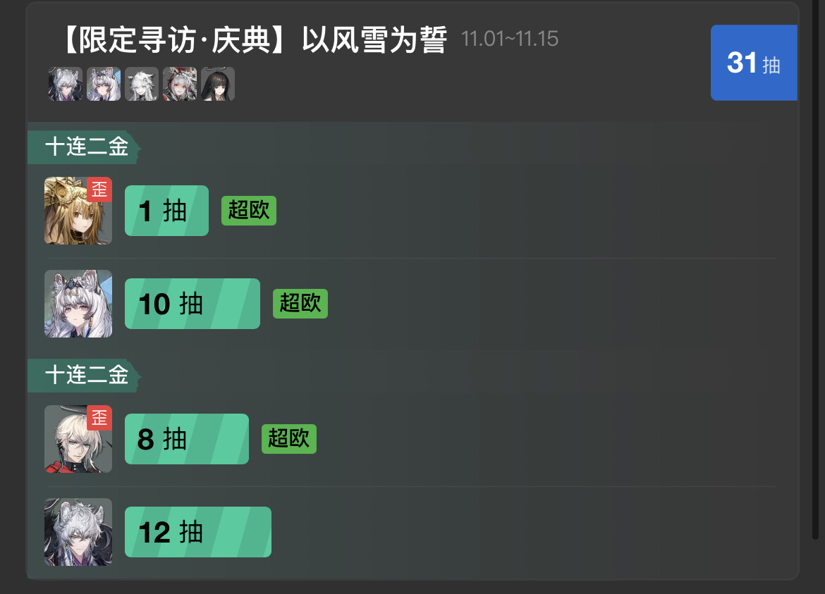 虽然我出的金少,但我两个十连下去黄票从0变成84![]()