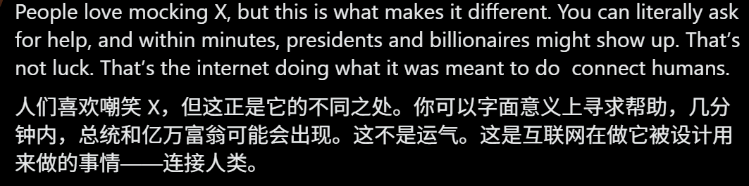 X上无意间看到的,可以说是我近来所听到颇为感动的一句话