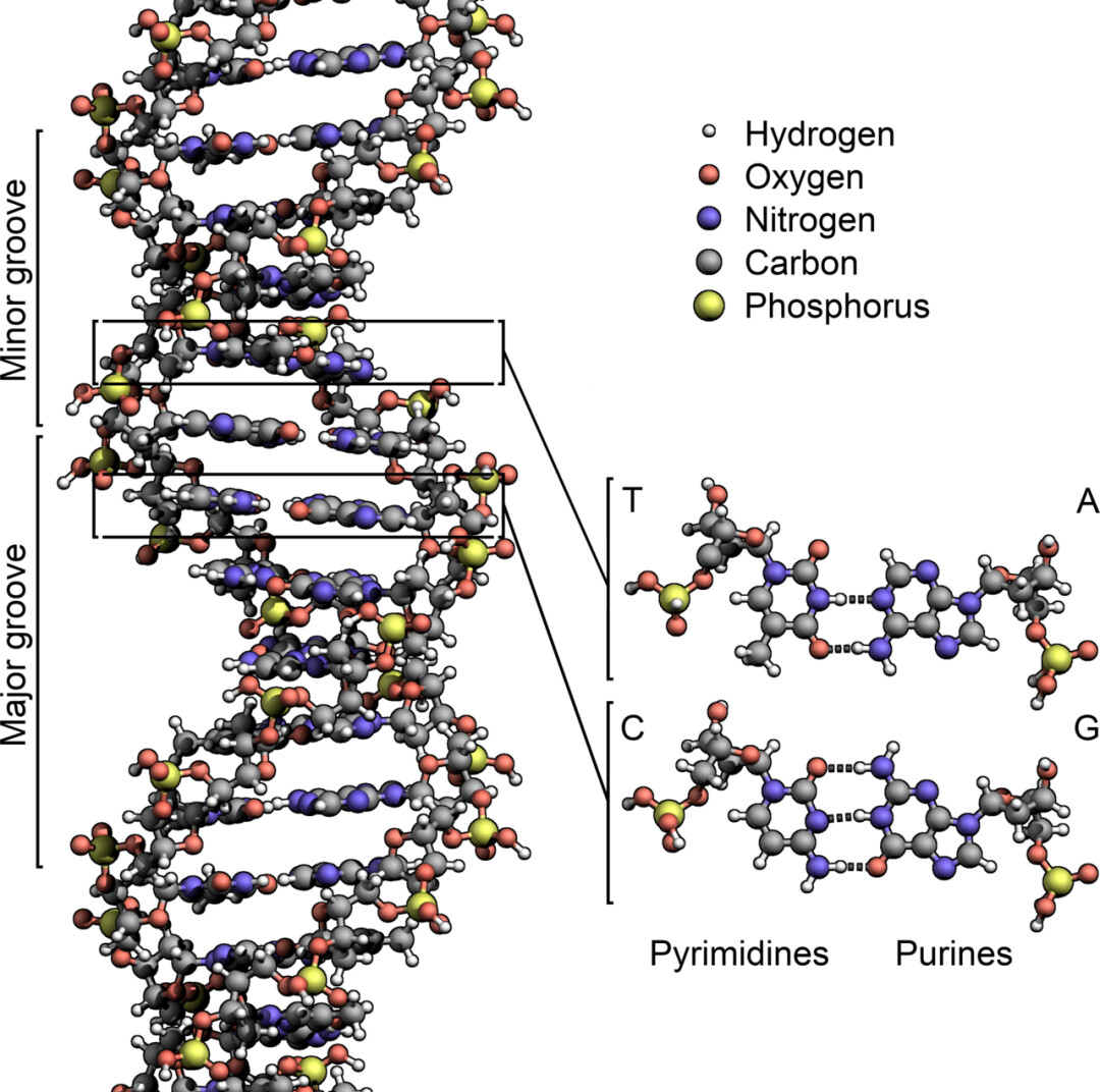 沃森探索DNA结构受物理学家薛定谔影响,而合作伙伴克里克是物理学出身,由此来看,物理思维对DNA结构问题的解决具有重要影响。按照物理学及物理化学的观点,成对电子最稳定(DNA双链与碱基配对);根据泡利不相容原理,成对电子方向必须相反(DNA两条链方向相反);物理学定律大多符合右手定则,而DNA也为右手双螺旋。在这些原理基础上并结合实验数据,沃森和克里克最终提出DNA双螺旋的结构:DNA是一种由两条方向相反的DNA单链构成、内部存在碱基配对(A与T,G与C)的右手(right)双螺旋分子。