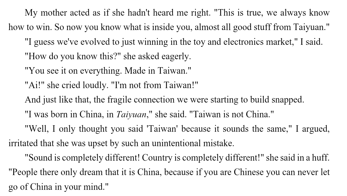 最后一句说岛上的人幻想自己是中国人 但这个中国可能是中华民国