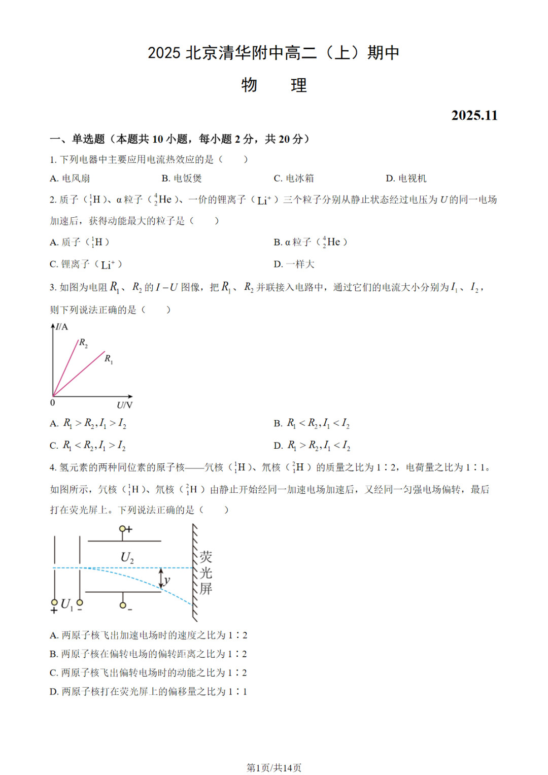 [永久链接]( 下载丨2025年北京清华附中高二期中语文、物理试题答案 — WeChat → HTML ) · [原文链接](https://mp.weixin.qq.com/s/n-P4BWg8LPPs7M3z6D-G-w)