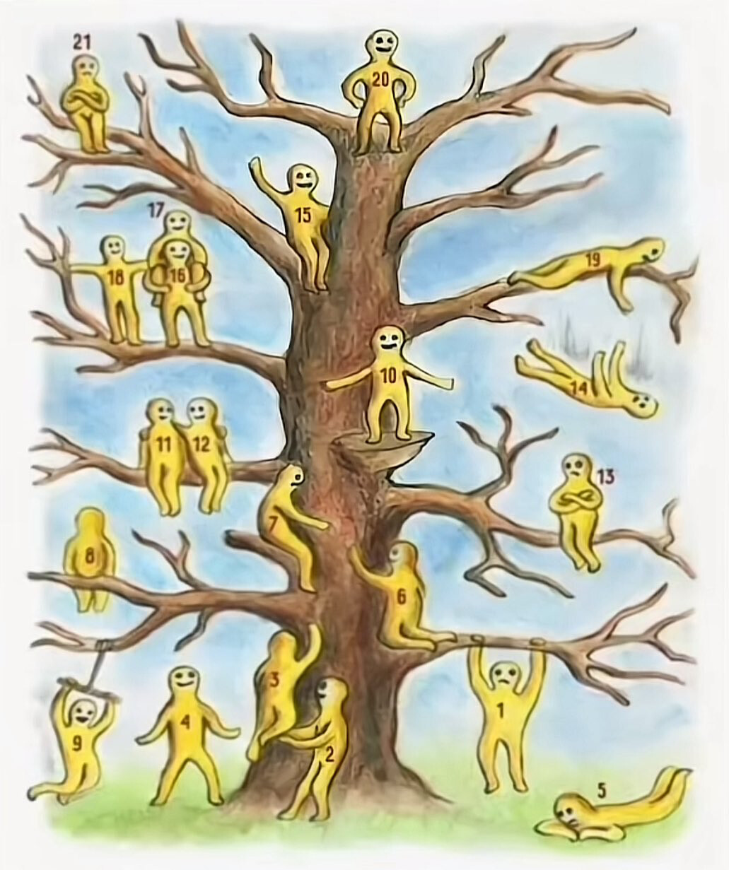 謝謝 @suen 的邀請!這是一個非常經典的「樹上小人」(Psychologist Piirto’s Tree Person Test)心理投射測試。