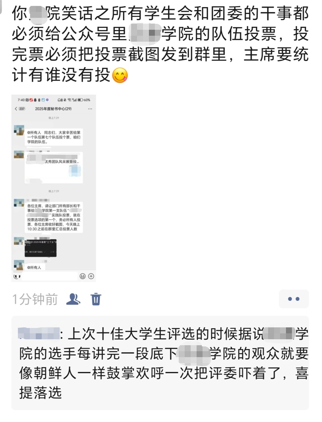 头一次见到这种学校公众号投票学院要统计谁没有给自家投票的