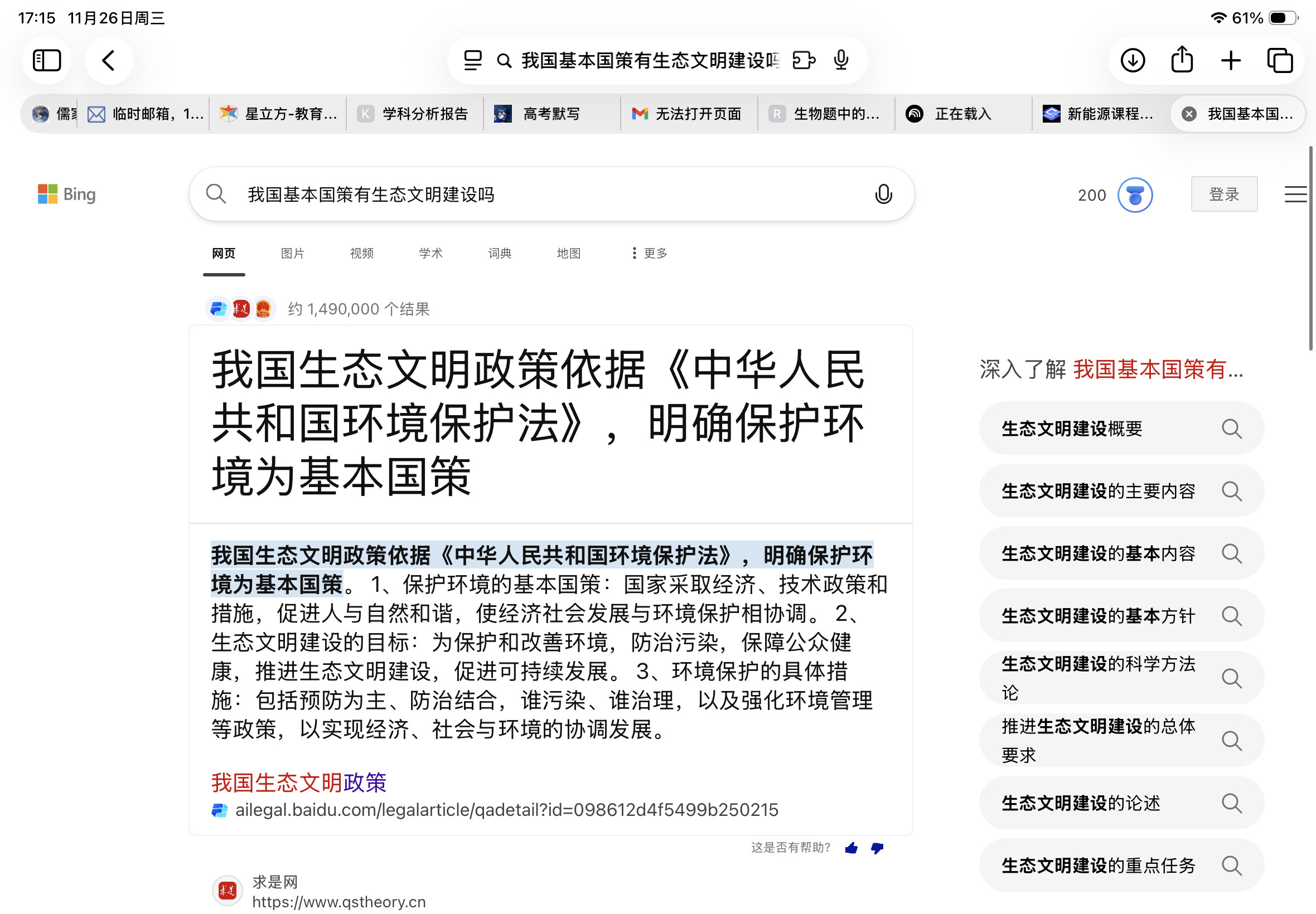 我国的基本国策没有「生态文明建设」吧