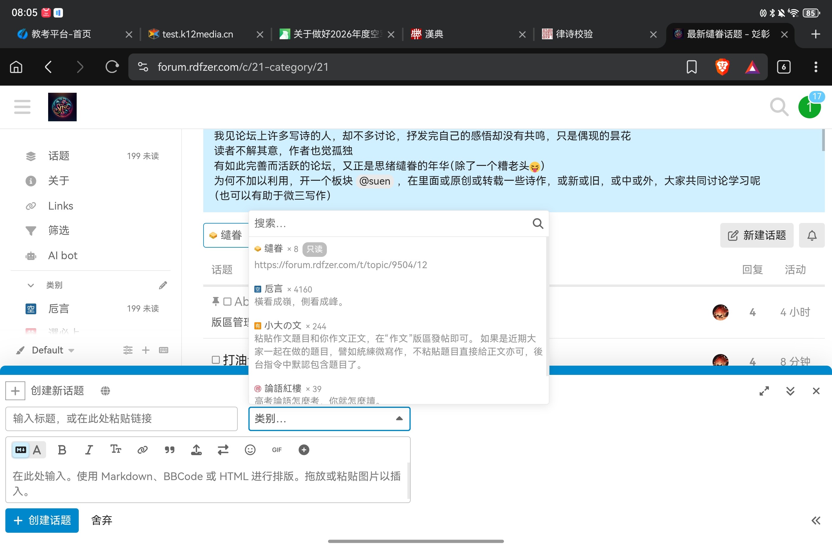 版區設置了成員權限,需要先加入 https://forum.rdfzer.com/g/Poems