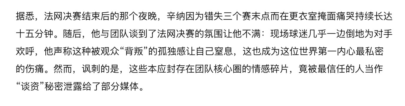 去年法网决赛也是,观众一边倒支持阿卡然后辛纳心理防线直接崩溃