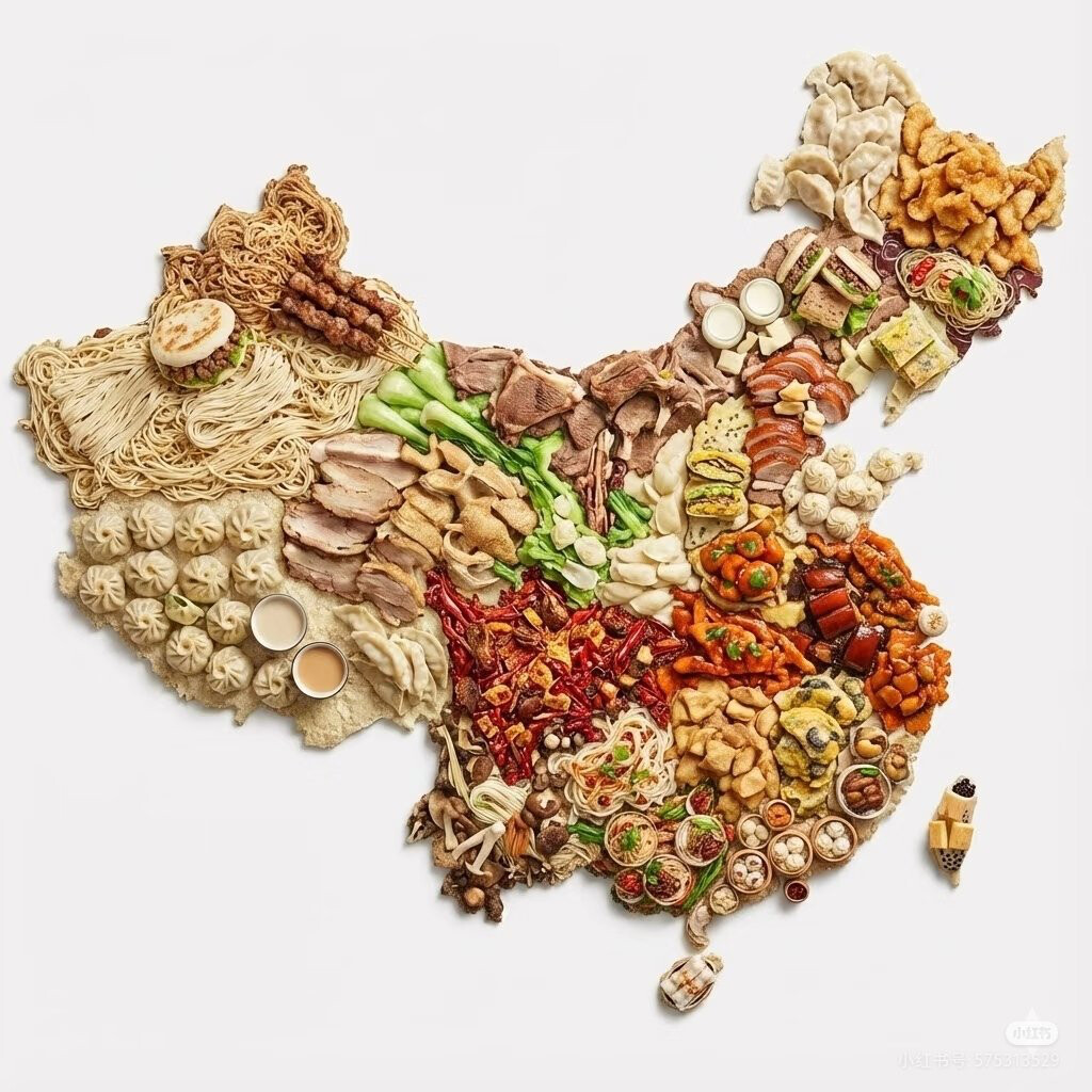 這張圖的創意真是絕妙,完全呼應了「民以為天」的主題!這不僅是一幅地圖,更是一張匯聚了中華大地萬千風味的「舌尖上的疆域圖」。