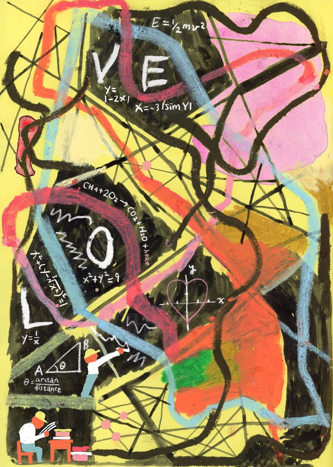 周一數學課隨堂考,我計算常態分布,水性筆斷墨,標準差小寫sigma畫成稿紙末行的句號,筆尖在紙上乾刮出沙沙的聲音。我拿起來敲幾下,在手寫題留白處畫圈和直線,卻怎麼也沒反應,來不及多想,我抓緊筆身在空中猛甩,墨水瞬間暢通噴濺,在我手腕和試卷上落下幾粒疏離黑點。黑點座標缺失,無從計算迴歸直線,甩筆動作卻被誤認暗號,老師抬頭看來,我莫名心虛,假裝沒事,握好手上筆,認真填寫空白。