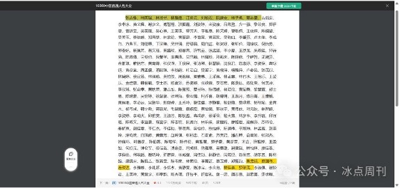 其中,“张吉惟、阮建安、李中冰、夏志豪”,这 4 个人的名字,与百度文库《10000 中国普通人名字》开头的部分名字吻合。