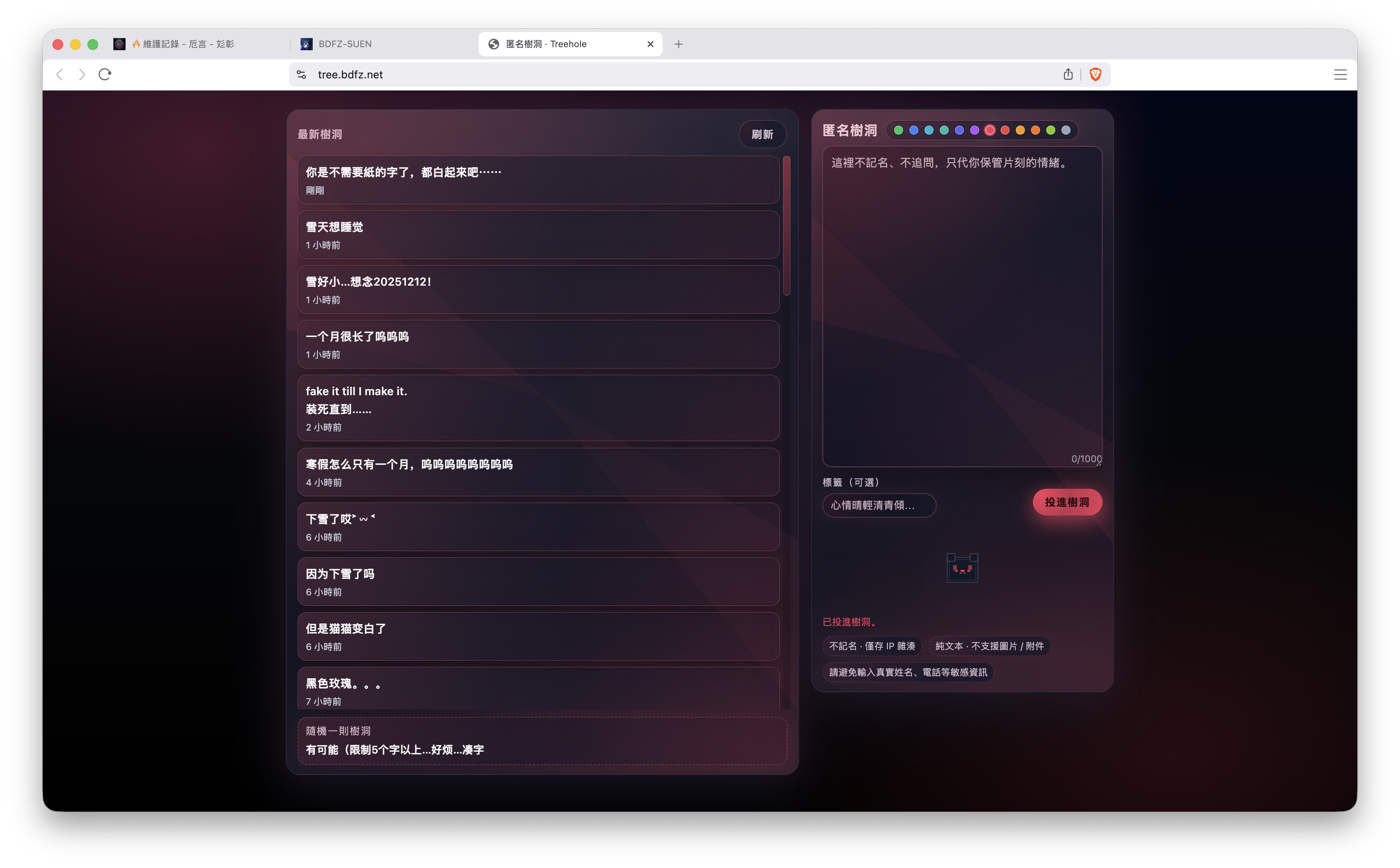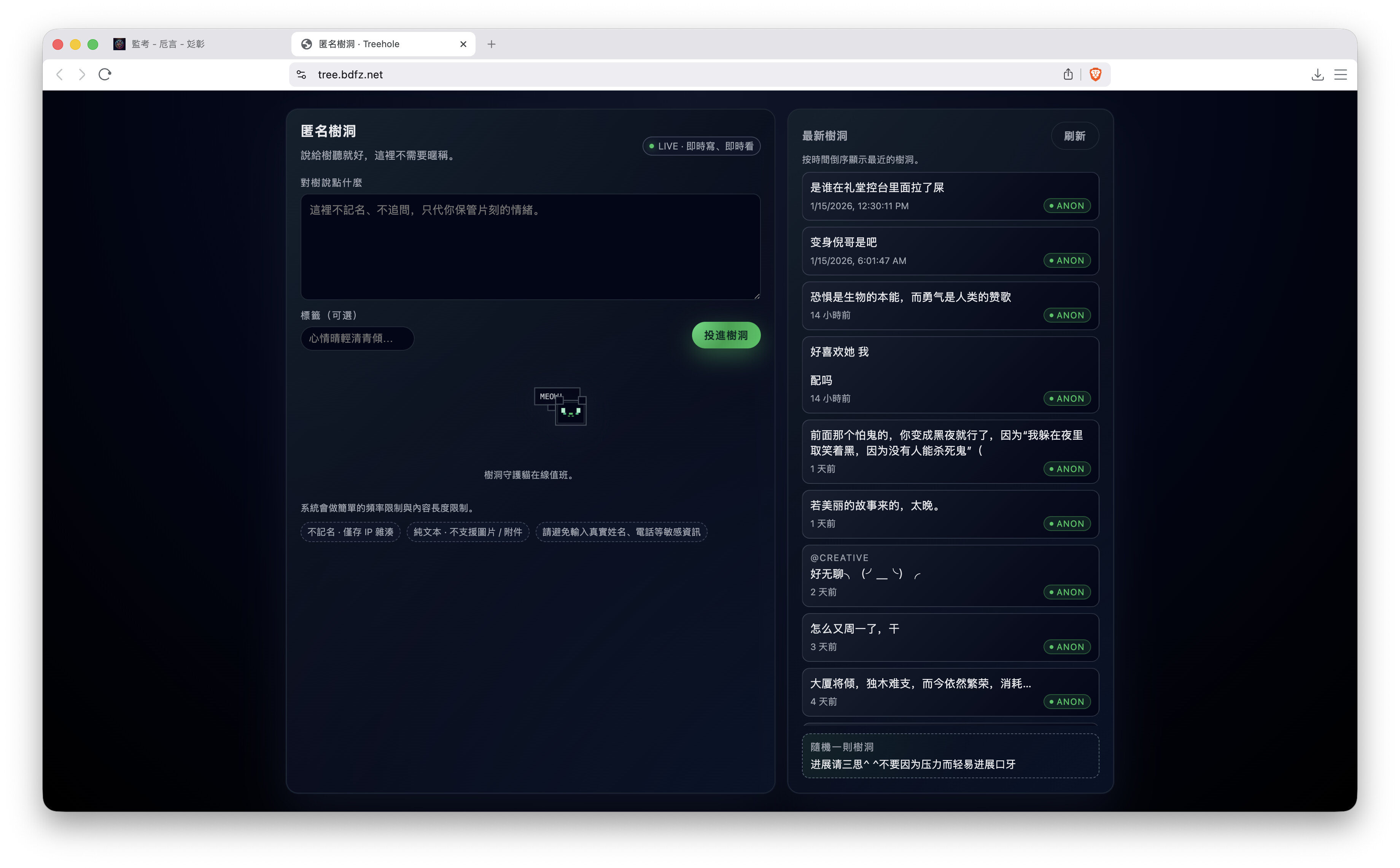 樹洞重開,遷移成功,數據都在。