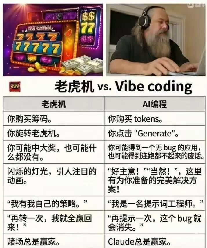 AI写代码就像那个经典笑话:为了让灯泡不闪,它给整个电路包了三层绝缘胶带。最骚的是居然还能亮。