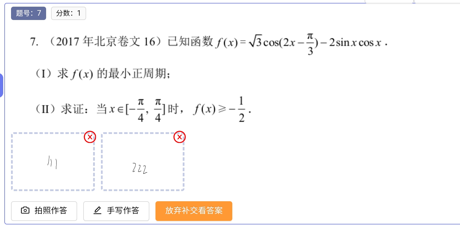 非常抱歉,由于测试不足,没有注意到拍照提交答案的问题,目前使用最新的移除无用元素脚本会导致上传照片后仍不显示(实际上在后端是有的)。会尽快尝试修复,但大概率要等到晚上回家有F12