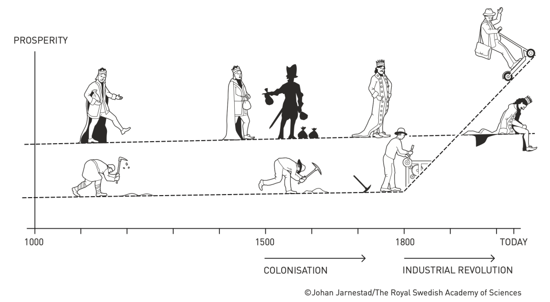 世界上最富有的20%的国家现在比最贫穷的20%更富有大约30倍。此外,最富有国家和最贫穷国家之间的收入差距持续存在;尽管最贫穷国家变得更富有,但它们并没有赶上最繁荣的国家。为什么?今年的诺贝尔获奖者发现了新的、令人信服的证据来解释这种持续存在的差距——社会制度的差异。